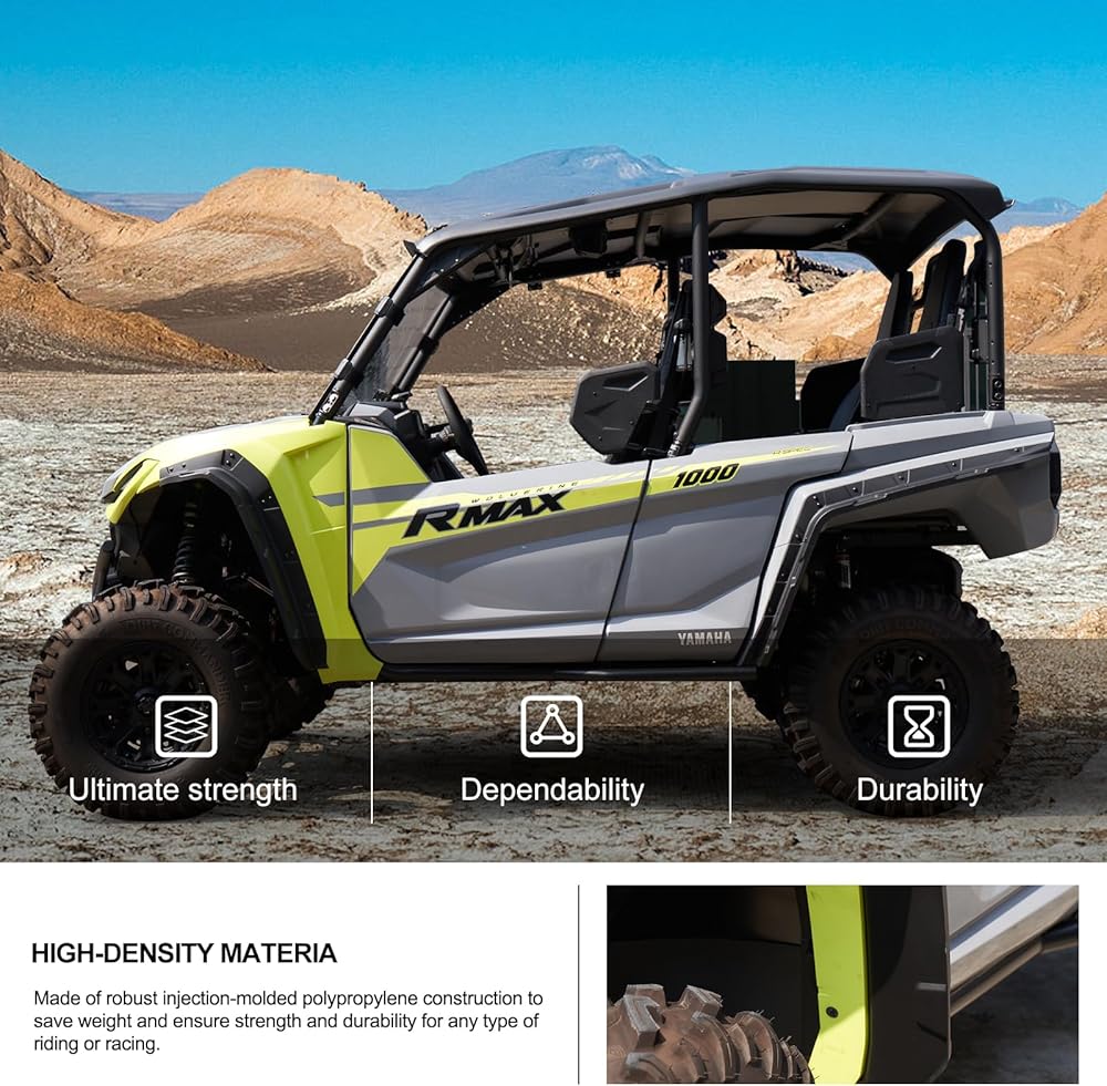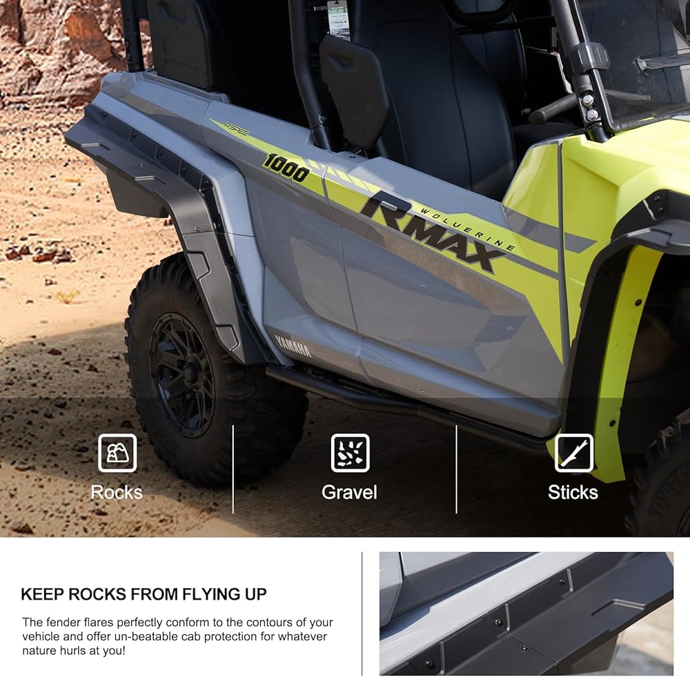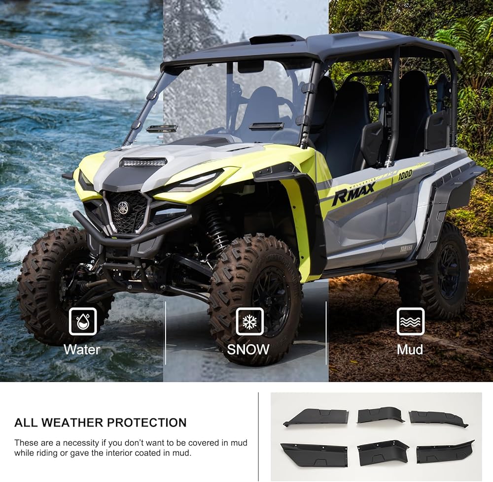▶ PERFECT FIT RMAX4 1000 FENDER FLARES - Compatible with 2021-2024 Yamaha Wolverine RMAX4 1000 (NOT RMAX2). These are a necessity if you don't want to be covered in mud while riding or gave the interior coated in mud.
