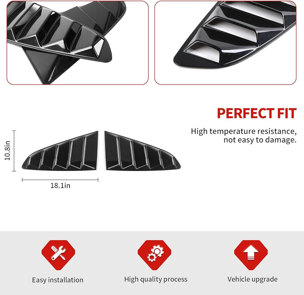 Jimen Rear Window Louvers Cover Exterior Trim Compatible with Ford Mustang 2015-2023