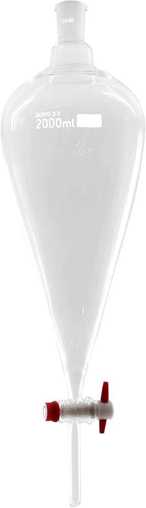Capacity: 2000ml, a really big separatory funnel adequate and ideal for big projects and separating a large quantity of liquids of different densities. Comes with really thick and heavy glass wall because of the mere size of it
