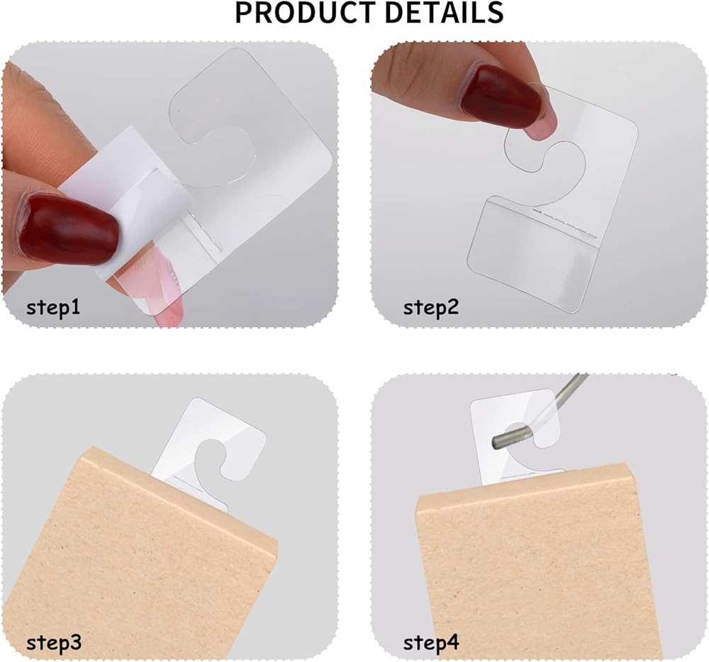 • 【Material】These adhesive hang tags hook are made of PET,strong, high quality clear plastic hooks to keep your products hanging.