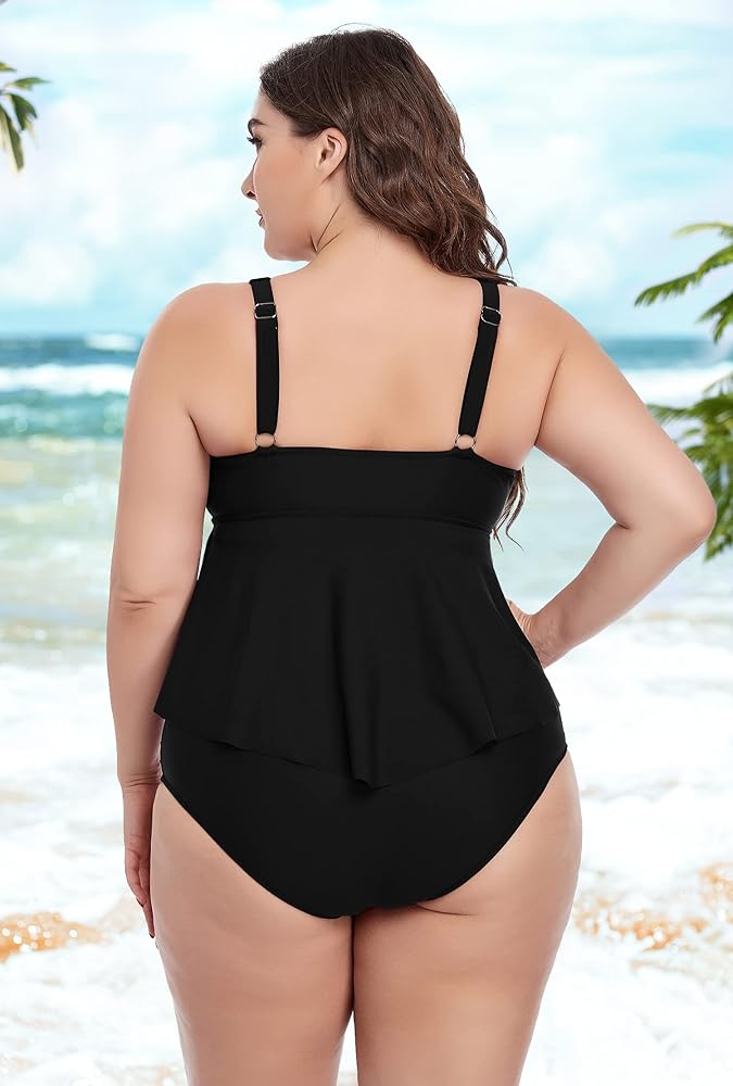 ملابس سباحة بمقاس كبير: قمصان تانكيني بمقاس كبير مع أشرطة كتف قابلة للتعديل، والتي يمكن تعديل الطول وفقًا للمقاس. خط العنق على شكل قلب لن يكشف الكثير، بينما توفر الأكواب الناعمة دعمًا أفضل وشكلًا مريحًا بما يكفي للارتداء طوال اليوم، فهو مناسب للنساء ذوات الصدر الكبير/الكبير.