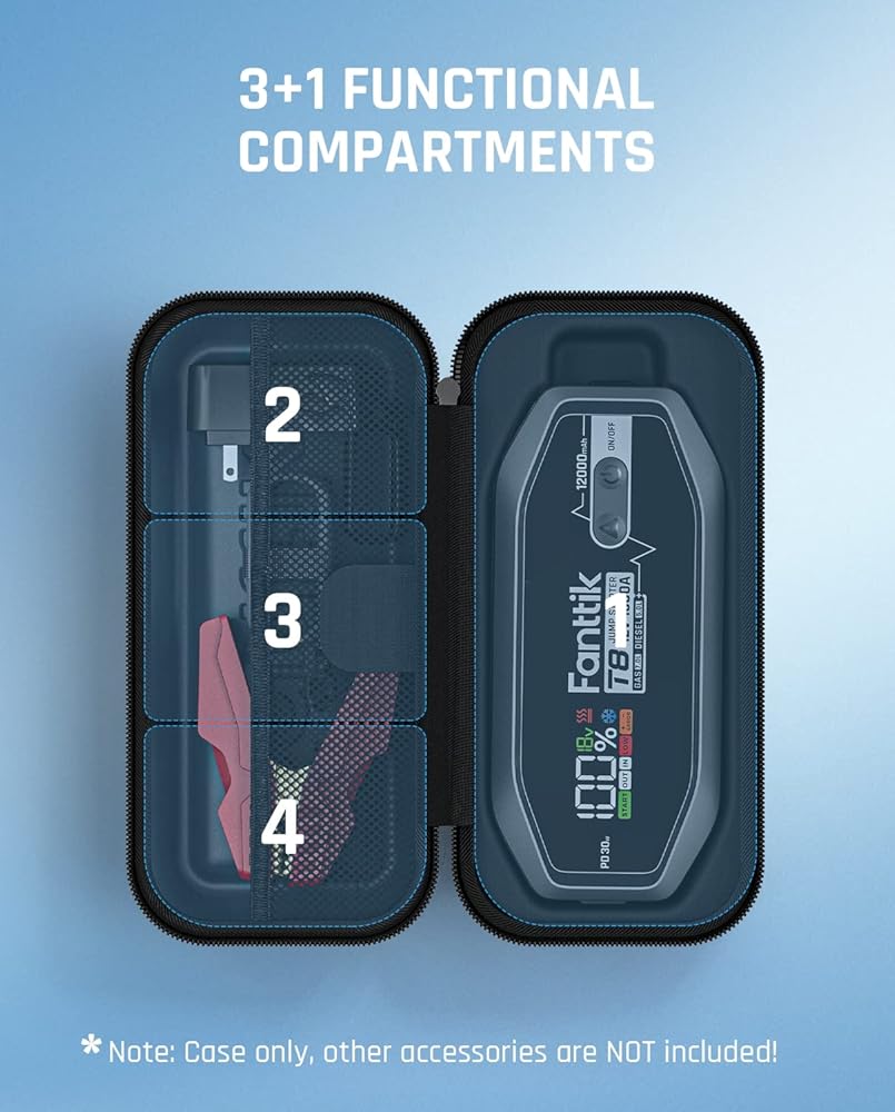 【مخصصة رسميًا】مصممة خصيصًا لجهاز Fanttik T8 Jump Starter، حقيبة تخزين بطارية السيارة هذه مخصصة لحماية جهاز تشغيل القفز T8 الخاص بك والملحقات الأخرى ذات الصلة.
