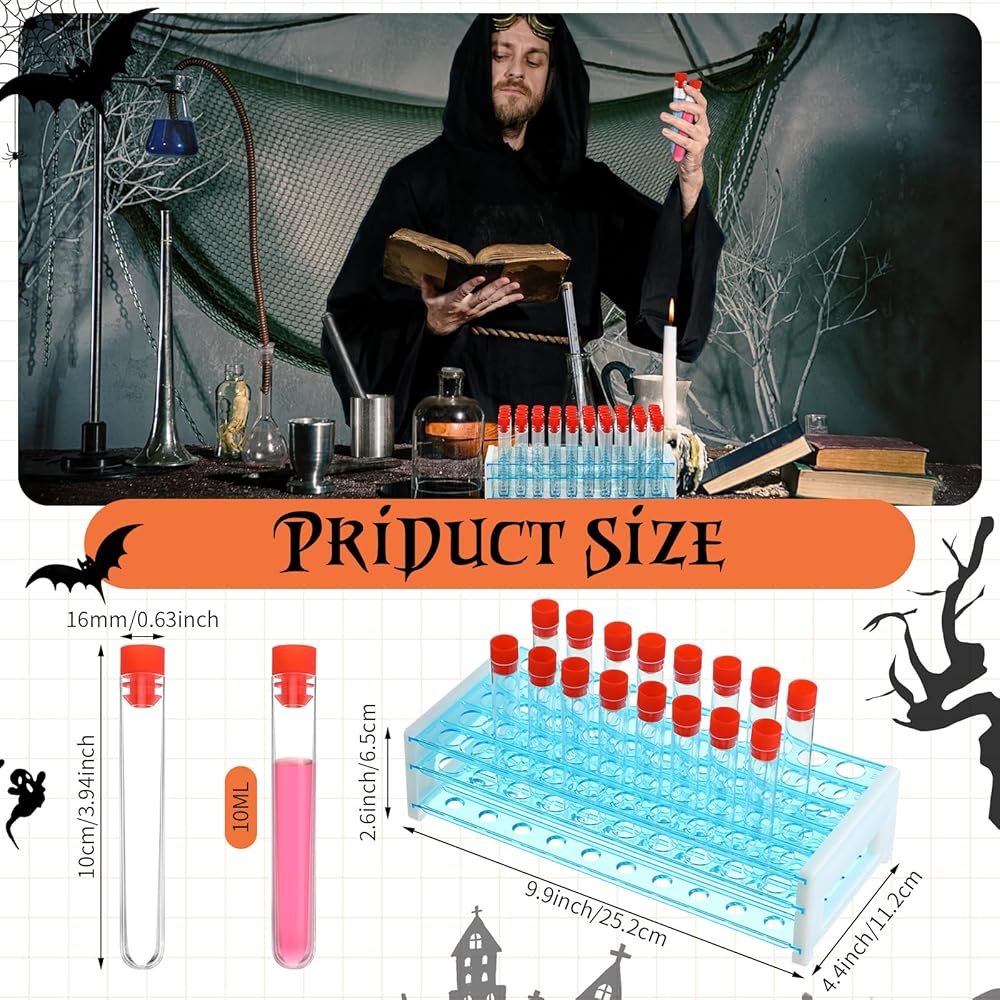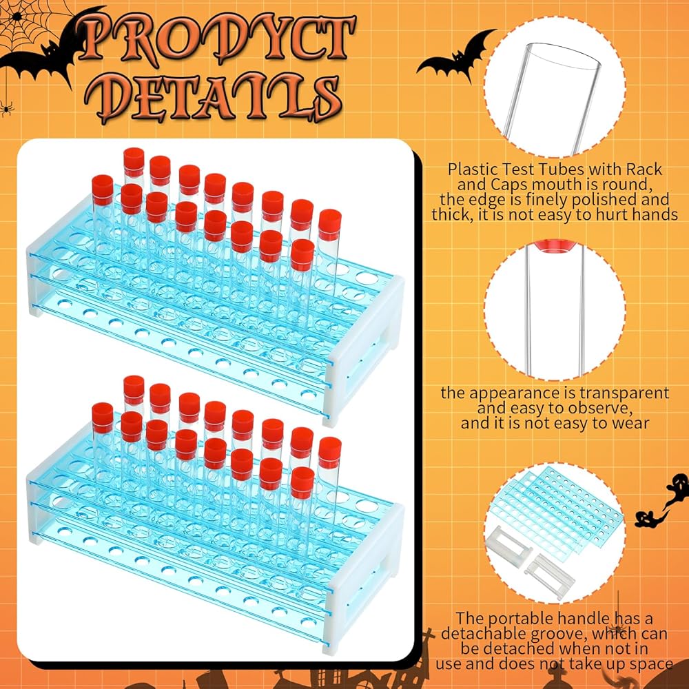 The test tubes with lids can be well sealed and will not leak easily, can be tilted or inverted, suitable for use in theme parties such as Halloween, filled with drinks, making the party more authentic and guests more engaged and excited.