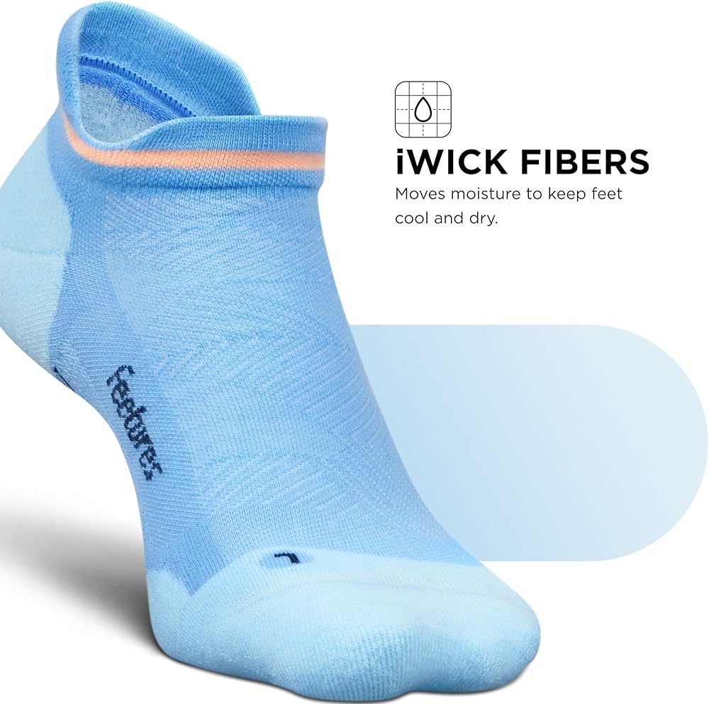 Breathable Socks for Men & Women: These athletic socks are made with iWICK fibers that wick moisture to keep feet cool and dry; mesh construction of these Feetures socks provide ventilation for added breathability; these running socks with seamless toe feature The Perfect Toe