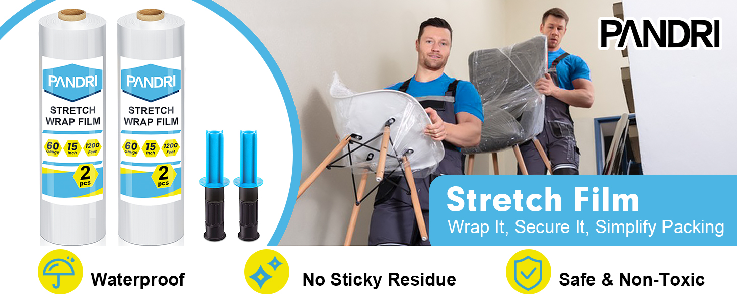 👍[خاصية شد جيدة] - يوفر فيلم التمدد PANDRI الخاص بنا قوة ومرونة ممتازة، مما يضمن تغليفًا آمنًا ومحكمًا لبضائعك