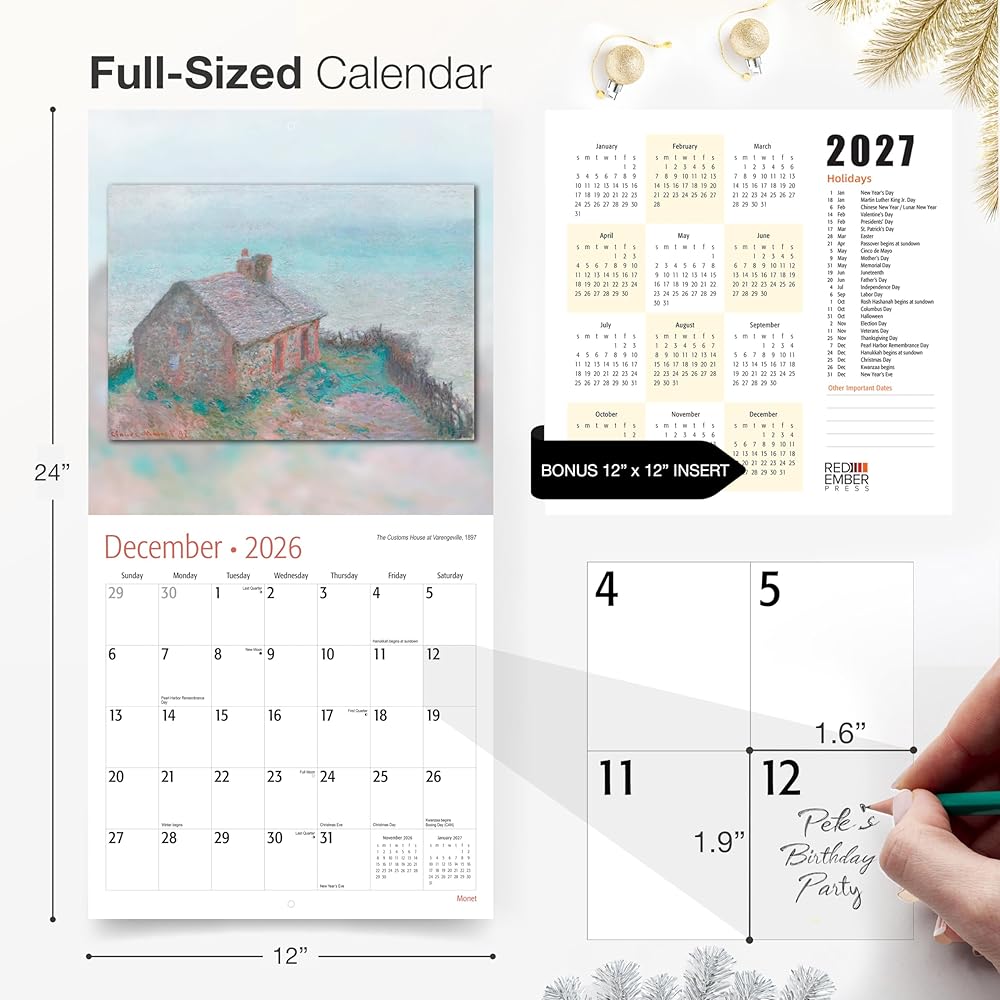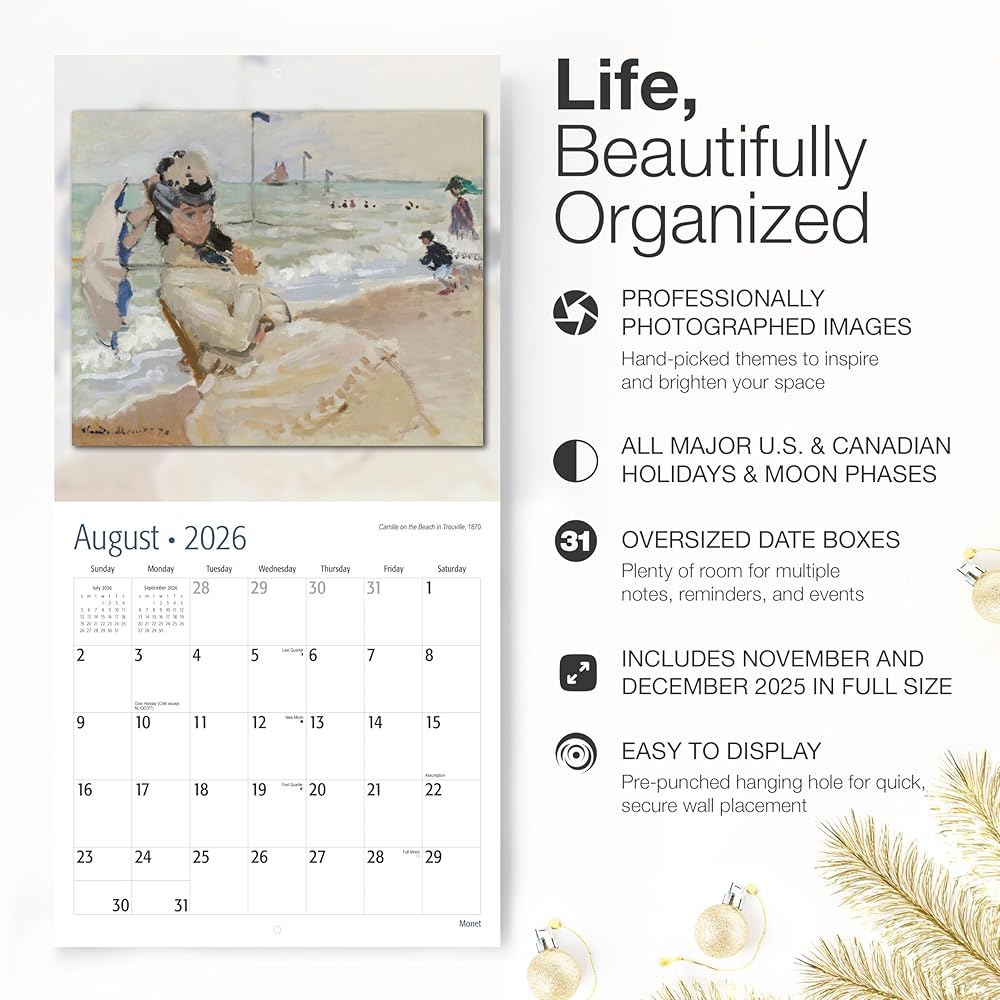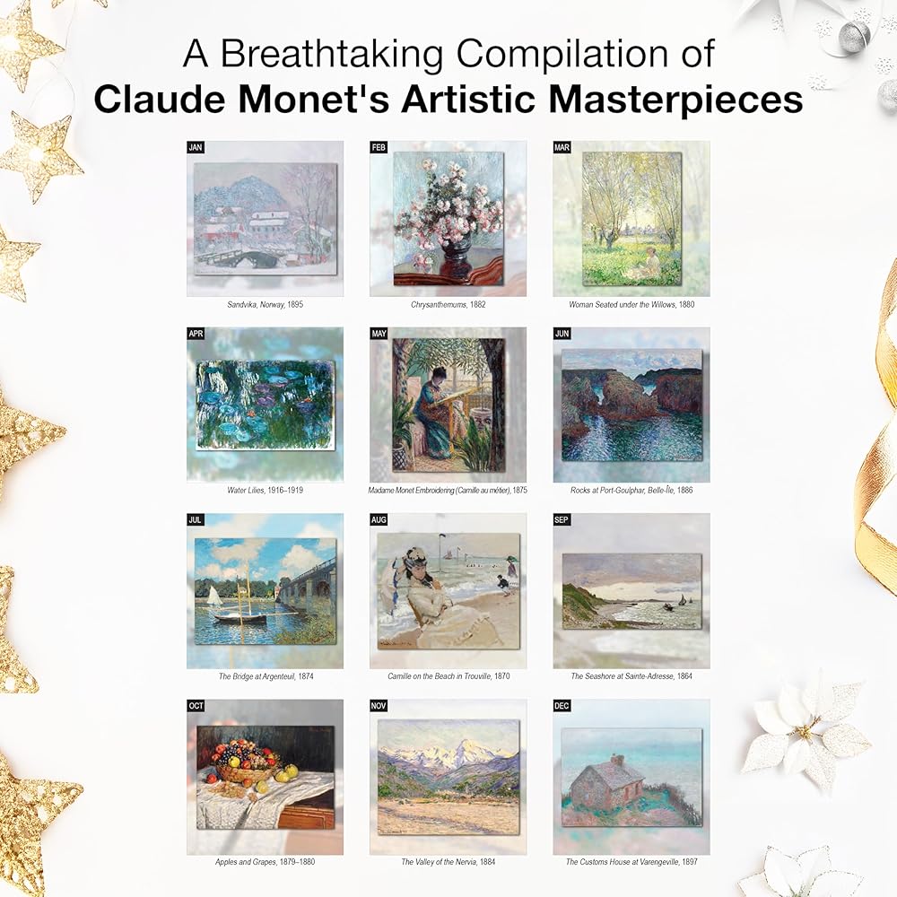 القطع الفنية - من زنابق الماء إلى La Grenouillère، يتميز هذا التقويم بالأعمال المذهلة لأحد أشهر الرسامين الانطباعيين الفرنسيين. قم بتعليق لوحة مونيه على الحائط الخاص بك طوال العام.