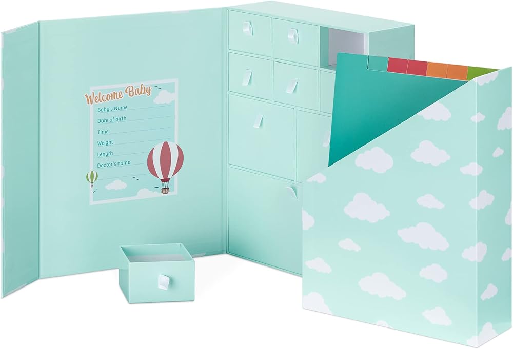 صندوق التذكارات: قم بتخزين تذكارات الأطفال واحتفظ بسجل للأشياء الأولى باستخدام صندوق الذاكرة من Navaris. يتميز الصندوق بمجموعة متنوعة من حجرات الأدراج المنزلقة التي يمكنها حمل مستلزمات الطفل من الأيام الأولى.