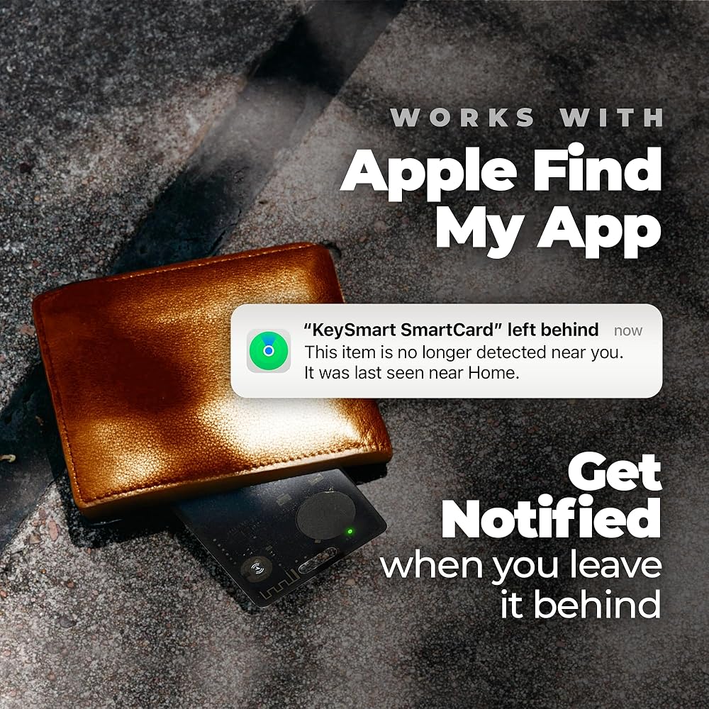 • KEYSMART Smart card 3 pack smoke - WORKS WITH THE APPLE FIND MY APP - Add your KeySmart Card to the Find My app on your Apple device. Play a sound on your KeySmart Card to find it nearby, or locate it with the Apple Find My Network, with the help of hundreds of Apple devices around the world. Does not work with Android devices.