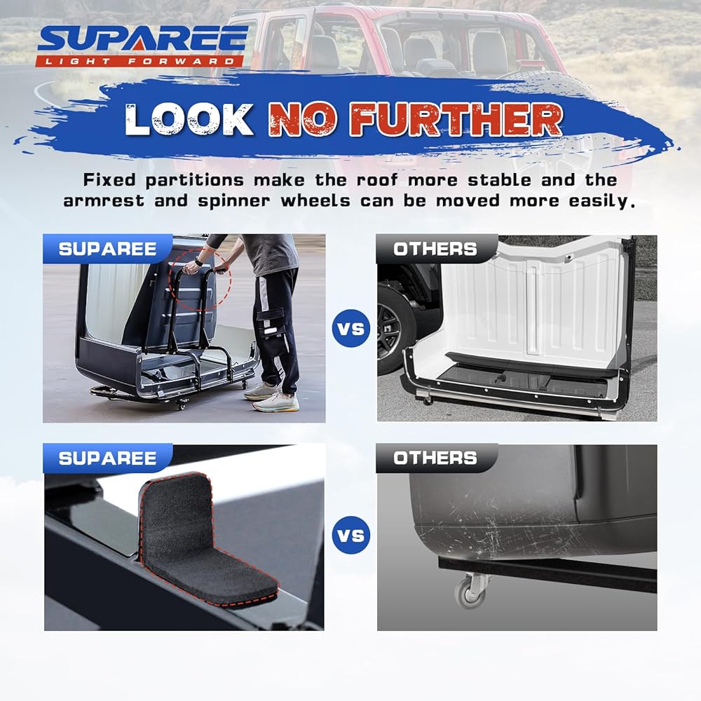 • 【تصميم حائز على براءة اختراع】هذه عربة تخزين ذات سطح صلب تناسب رانجلر، التي تعتمد مساند ذراعيها على تصميم مريح متطور للتحرك بسهولة.