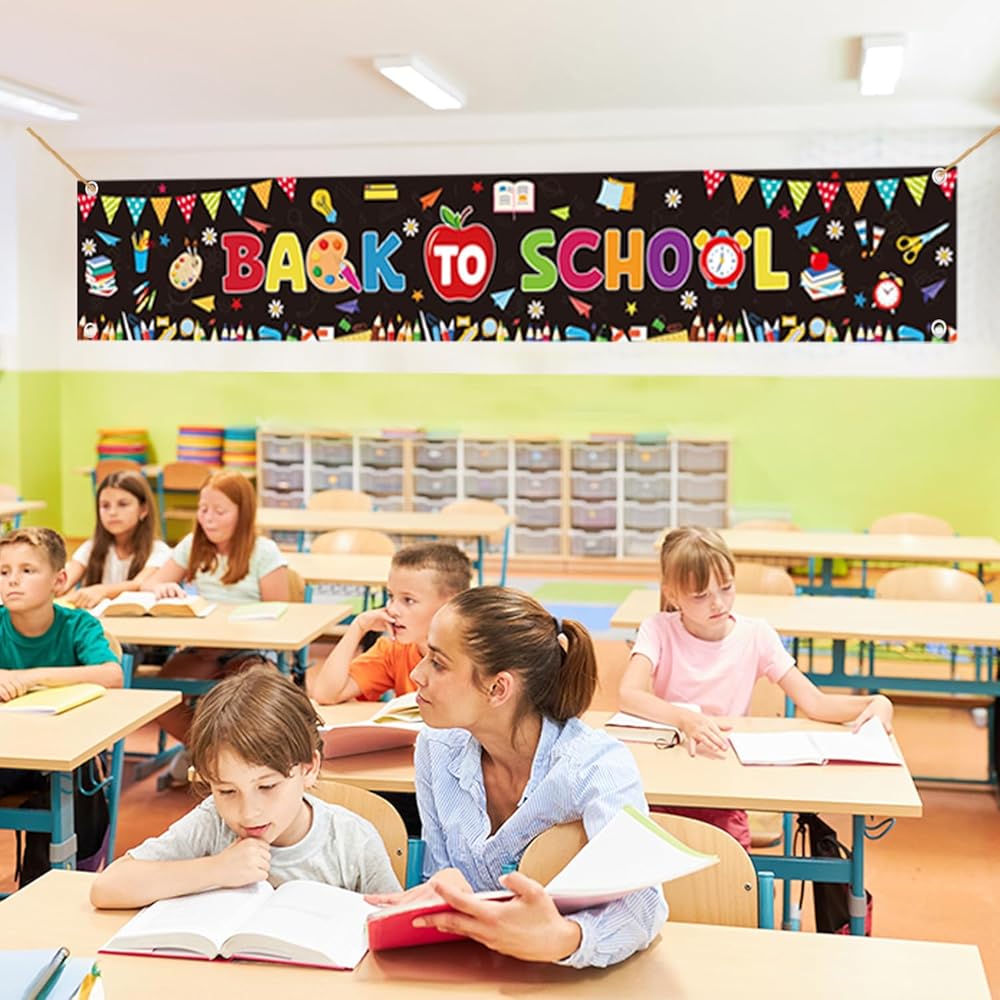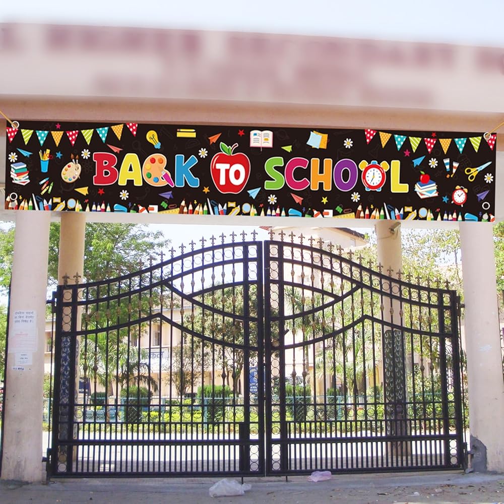 لافتة حديقة العودة إلى المدرسة - لافتة مرحبًا بالعودة إلى المدرسة، ديكورات لافتة كبيرة للعودة إلى ساحة المدرسة، ديكورات اليوم الأول من المدرسة، ديكورات ساحة العودة إلى المدرسة (118 * 19.6 بوصة)