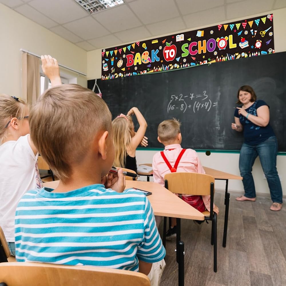 ديكور حفلات العودة إلى المدرسة: سوف تحصل على لافتة ترحيب كبيرة بالعودة إلى المدرسة بقياس 118 × 19.6 سم، وهي زخرفة رائعة للاحتفال بعودة طفلك القادمة إلى المدرسة!