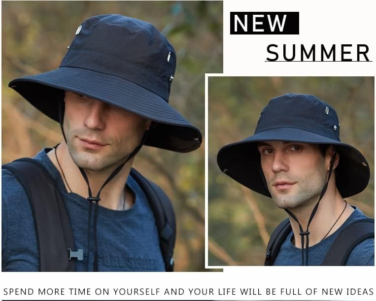 Men's Sun Hat Outdoor UPF50+ Mesh Wide Brim Bucket Safari Cap Foldable Waterproof Boonie Fishing Hats