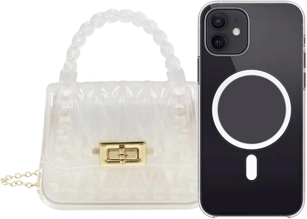 This trendy clear quilted purse only can fit coins, cards, candies, snacks, lipstick. Cannot fit any phone