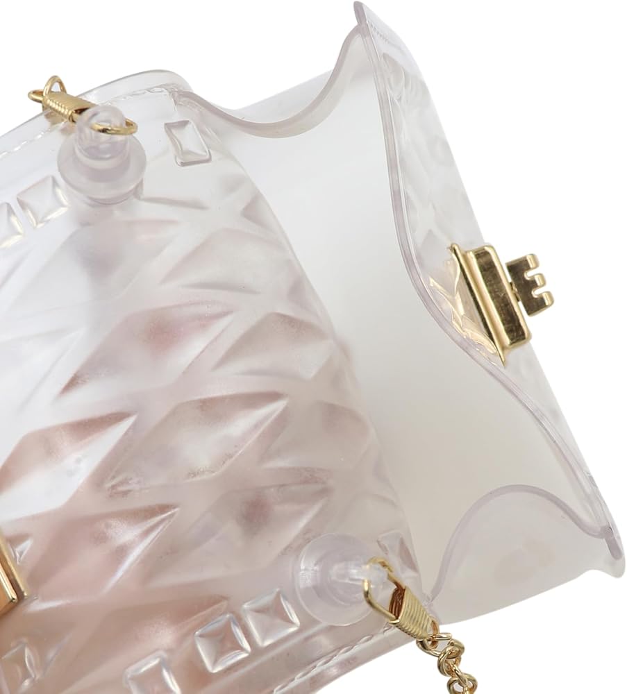 • Semi Clear Mini Purse: Combines a fashionable classic design with a durable construction. The flap top with exquisite hardware, and gold shoulder strap add an elegant touch to this clear bag for girls and women