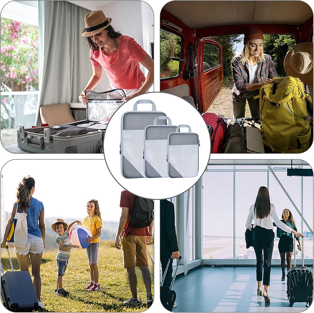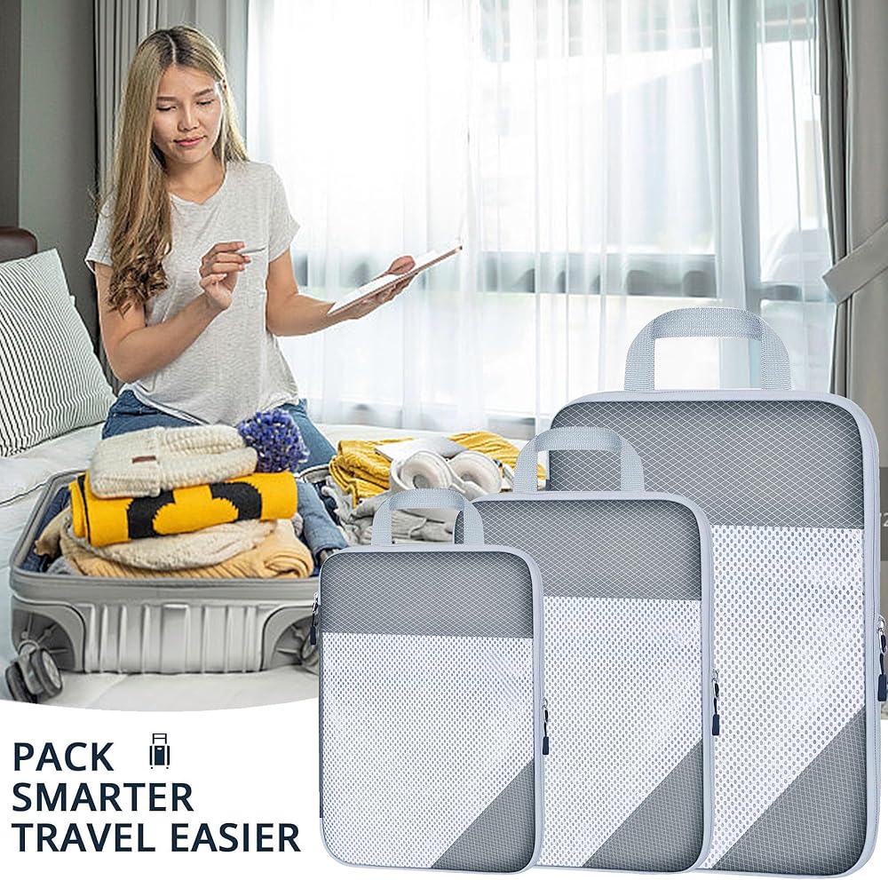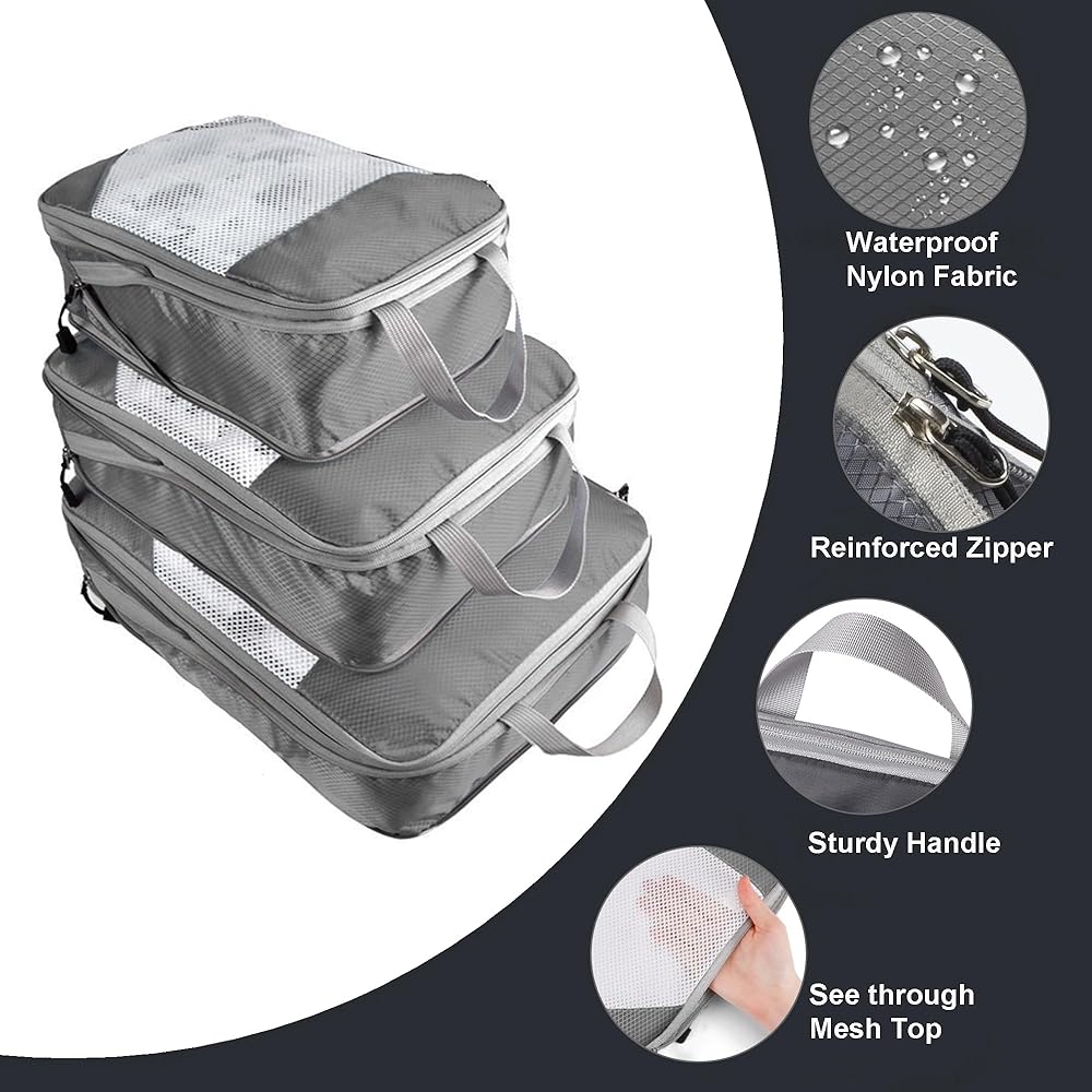 3 مجموعات من مكعبات التعبئة المضغوطة للسفر، مجموعة مكعبات خفيفة الوزن لتنظيم السفر بسحاب، إكسسوارات أساسية للسفر متينة وقابلة للتوسيع، مجموعة منظمات حقائب السفر