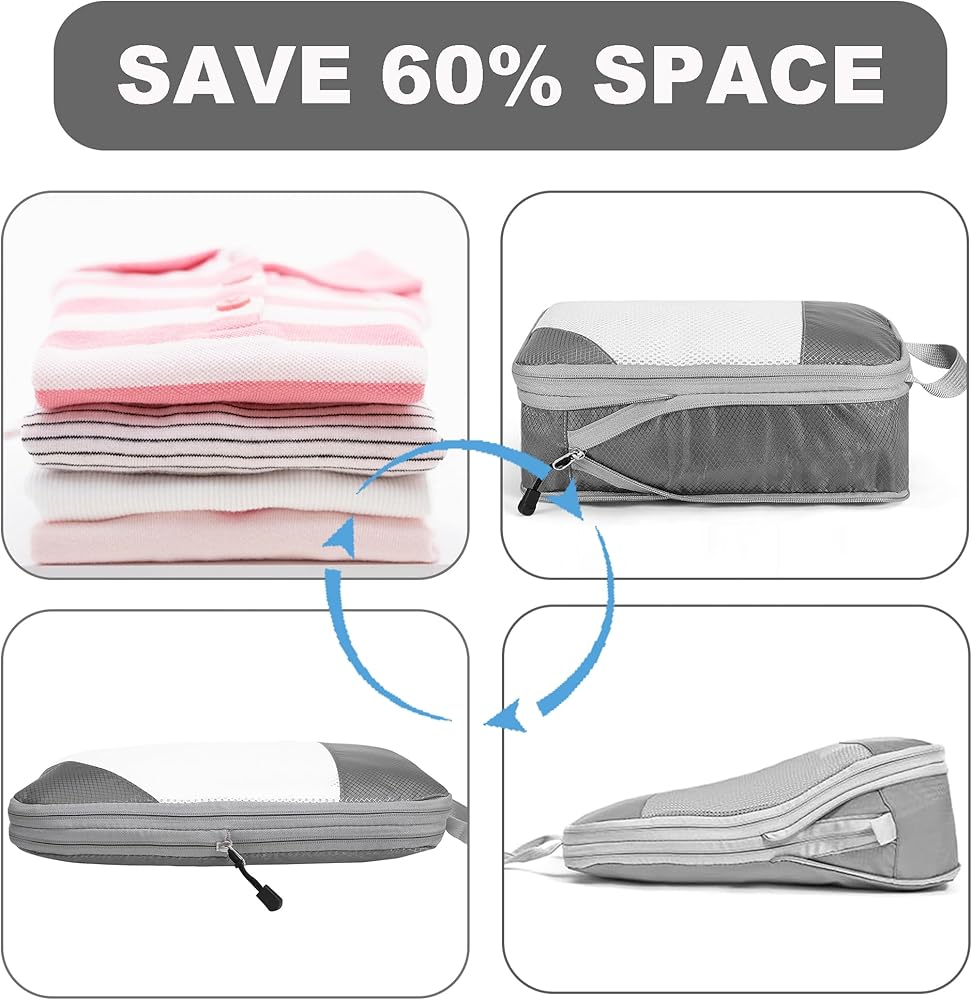 Save up to 50% Space: The compassion packing cube take less space to minimize the space inside, saves up to 50% more space compared to traditional packing cubes.