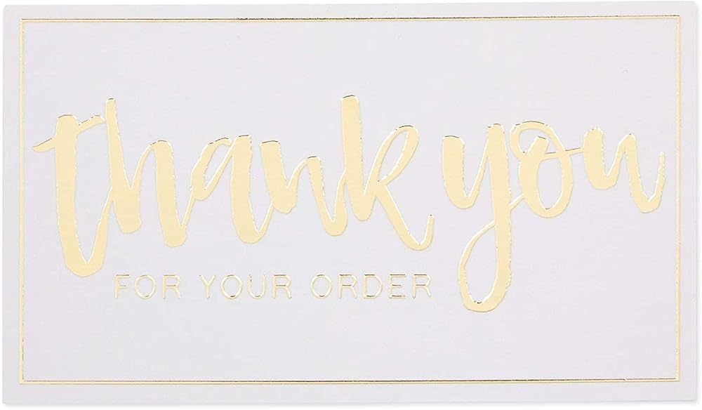 Thank You Cards: These professional white cards can make your business stand out while keeping communication with customers even after a purchase; each card reads "Thank you for your order"