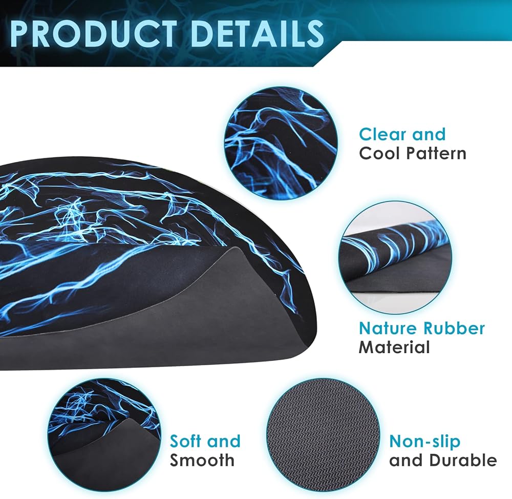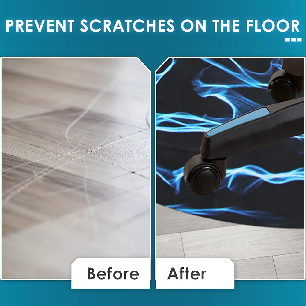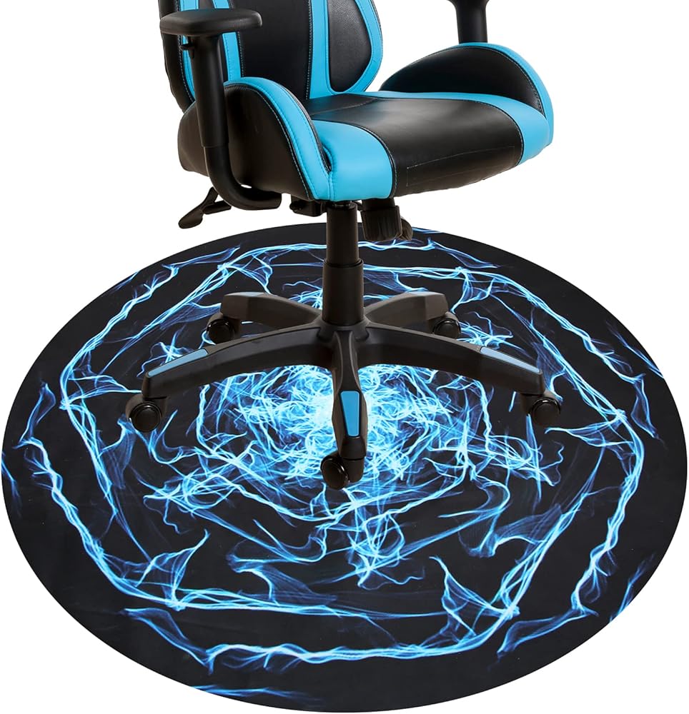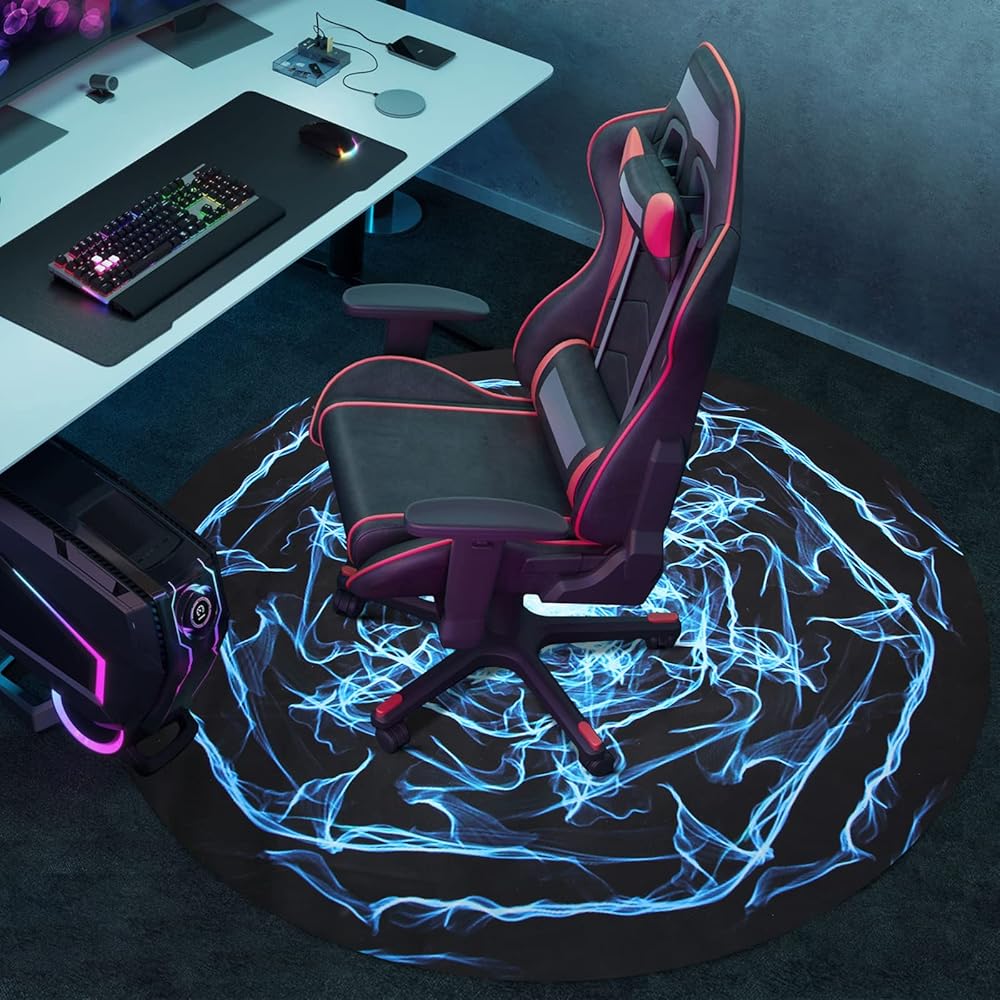 🪑 تصميم نمط مبهر - الخلفية السوداء العميقة مع البرق الأزرق المبهر والمتفجّر، مما يوفر تجربة بصرية رائعة. إنه واقي أرضي مؤهل ورفيق لا غنى عنه لكرسي الألعاب الخاص بك. نمط سجادات أرضية المكتب لدينا مناسب لمختلف الديكورات والمناظر الطبيعية، بغض النظر عن غرفة الألعاب المكتبية أو الأرضيات العائلية.