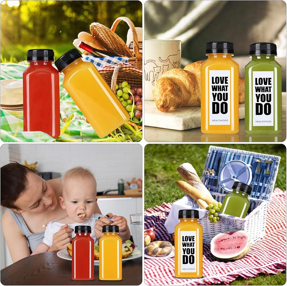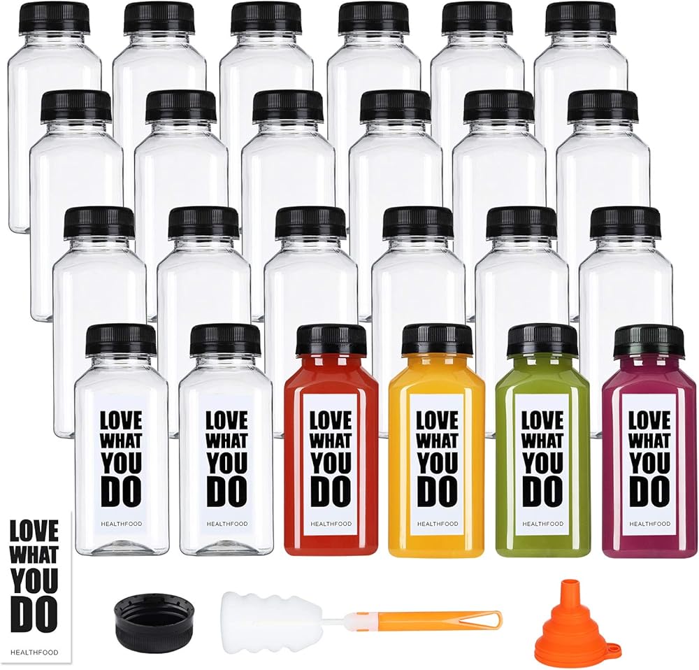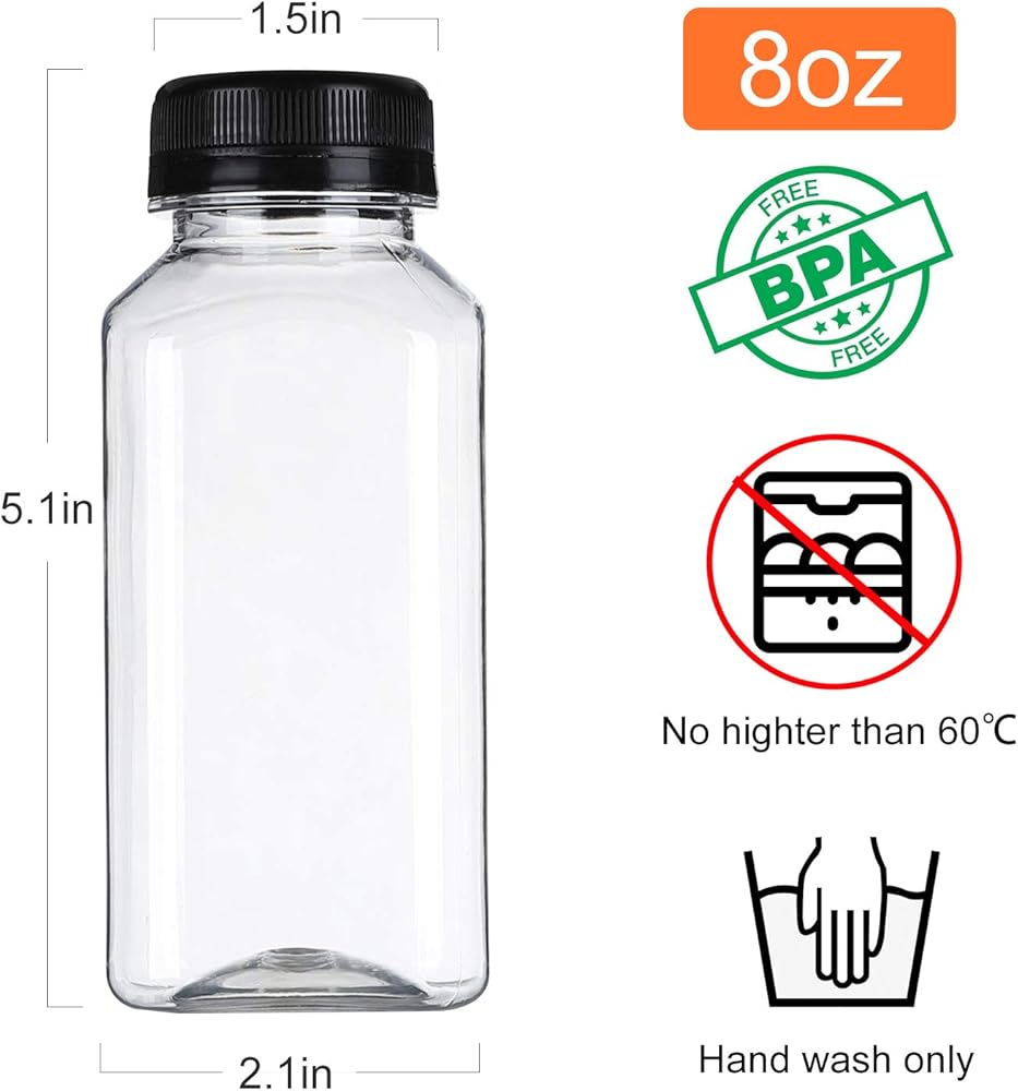 24 عبوة من زجاجات العصير البلاستيكية الفارغة - زجاجات مياه شفافة قابلة لإعادة الاستخدام من PET قابلة لإعادة التدوير مع أغطية مانعة للتسرب للعصير والماء والحليب والمشروبات (8 أونصة)