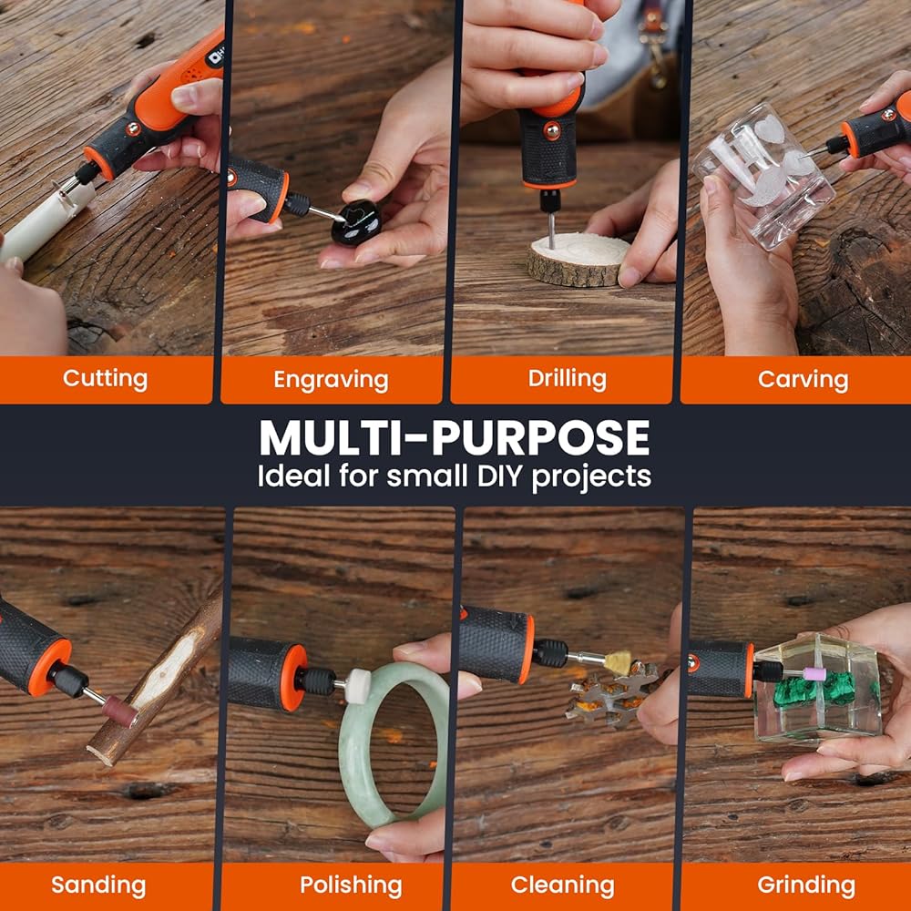 • 【إعدادات 5 سرعات قابلة للتعديل】- تحتوي مجموعة الأدوات الدوارة على 5 سرعات قابلة للتعديل، مع إعدادات سرعة 5000/10000/15000/20000/25000 دورة في الدقيقة لتلبية احتياجاتك في الأعمال المنزلية المختلفة، سواء كانت طحن منخفض السرعة أو عالي السرعة. النقش، يمكنك التبديل بزر واحد لتلبية احتياجاتك المتعددة. مفتاح سرعة بزر واحد، حتى المبتدئين يمكنهم إتقانه بسهولة وتحقيق مشروع DIY دقيق ومتقن.
