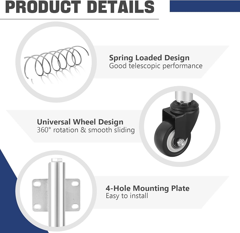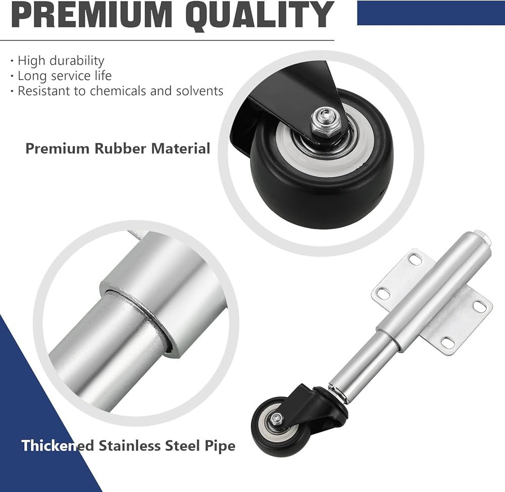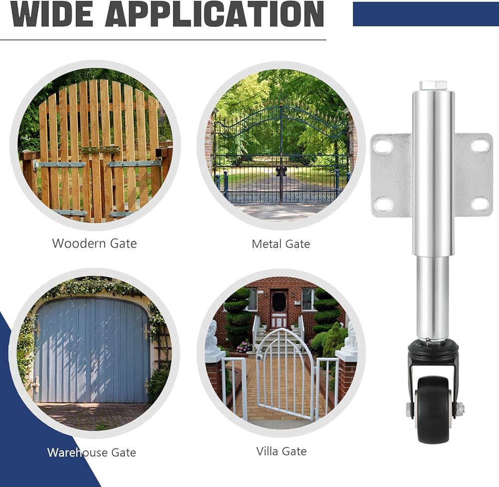 جودة فاخرة: عجلة البوابة هذه مصنوعة من مادة مطاطية فاخرة وهيكل معدني، قوي ومتين. يتمتع الحمل الزنبركي بسعة تحميل قصوى تبلغ 50 كجم/110 رطل ويمكنه أيضًا تحمل التعرض للمواد الكيميائية والمذيبات.