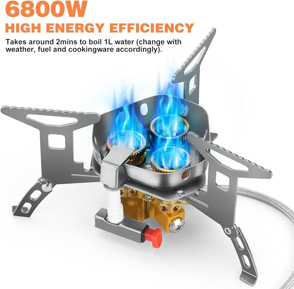 • ☕Strong Power and Windproof Design: With high power of up to 6800W, the camping stove heats faster, which helps finish cooking in a short time and improve efficiency. It takes less than 2 minutes to boil 1L water. And the windproof design provides an efficient prevention to wind, which helps improve burning efficiency and save gas fuel.