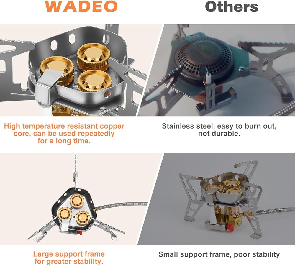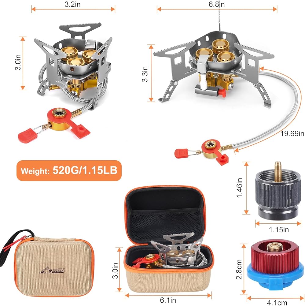 WADEO 6800W Windproof Camp Stove, Backpacking Stove with Piezo Ignition, Camping Gas Stove with Two Fuel Canister Adapter, Carry Case, Portable Stove for Outdoor Backpacking Hiking and Picnic