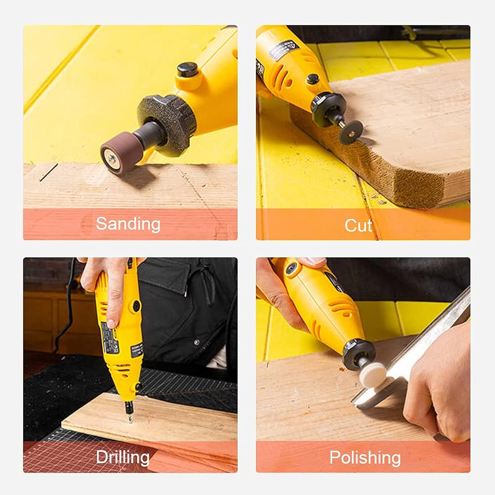 التطبيق - مجموعة متنوعة من الأدوات الدوارة مكونة من 361 قطعة - تشتمل بشكل مثالي على ملحقات أدوات دوارة غنية للصنفرة والتلميع والقطع والتشكيل والحفر وإزالة الأزيز والطحن والتنظيف والنقش والتشذيب وما إلى ذلك، وتمكنك من تحقيق أعمال حرفية مختلفة بكفاءة. يمكن استخدامها على الخشب والزجاج والبلاستيك والمعادن وما إلى ذلك. تلبي متطلبات التطبيق المختلفة الخاصة بك.