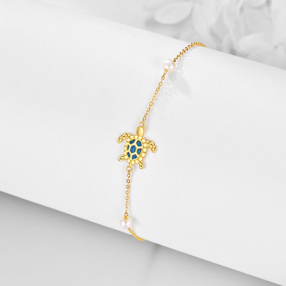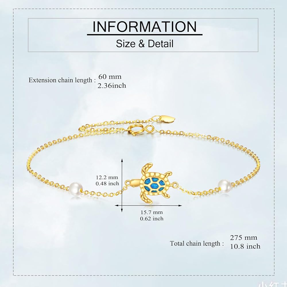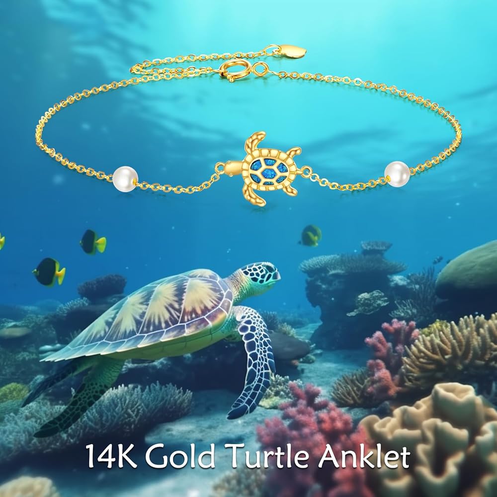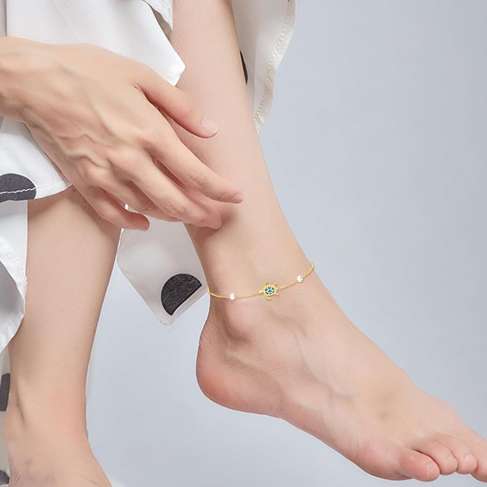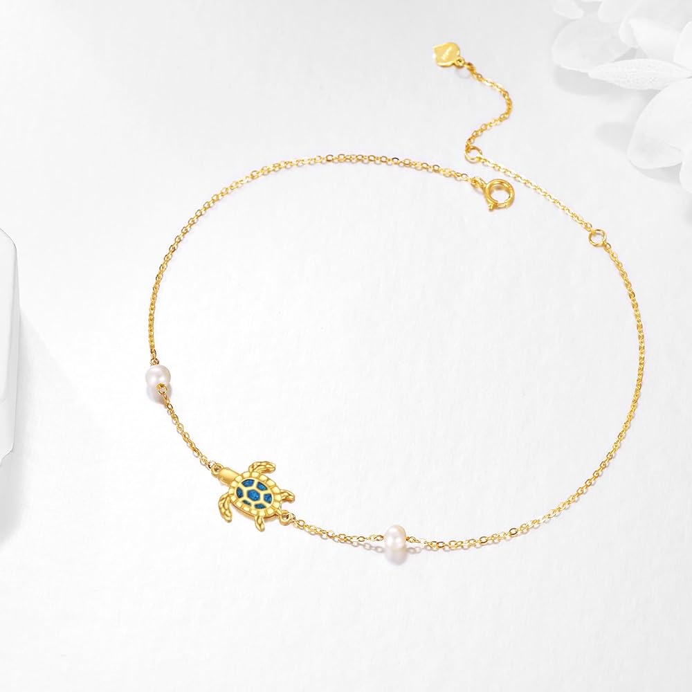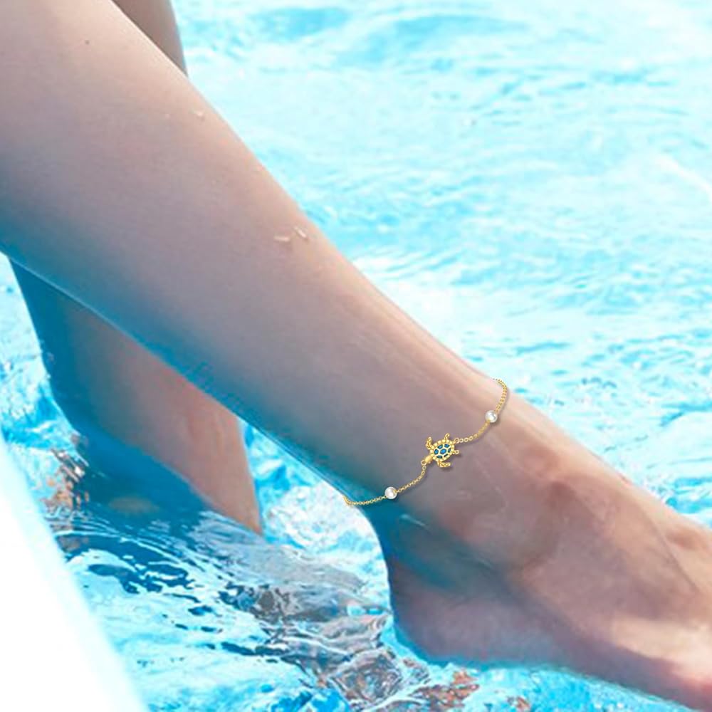• 【مادة عالية الجودة】 خلخال السلحفاة مصنوع من الذهب الصلب عيار 14 قيراط (ذهب حقيقي، وليس مطلي فقط)، مرصع بالعقيق الأزرق واثنين من لؤلؤ المياه العذبة، أنيق للغاية وأنيق. خلخال السلحفاة المصنوع من الذهب عيار 14 قيراط خالٍ من النيكل والرصاص، ولا يسبب الحساسية، ومريح في الارتداء، حتى للبشرة الحساسة.