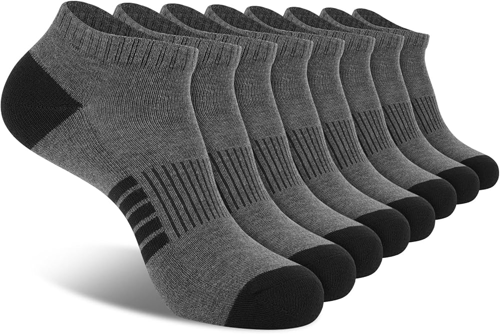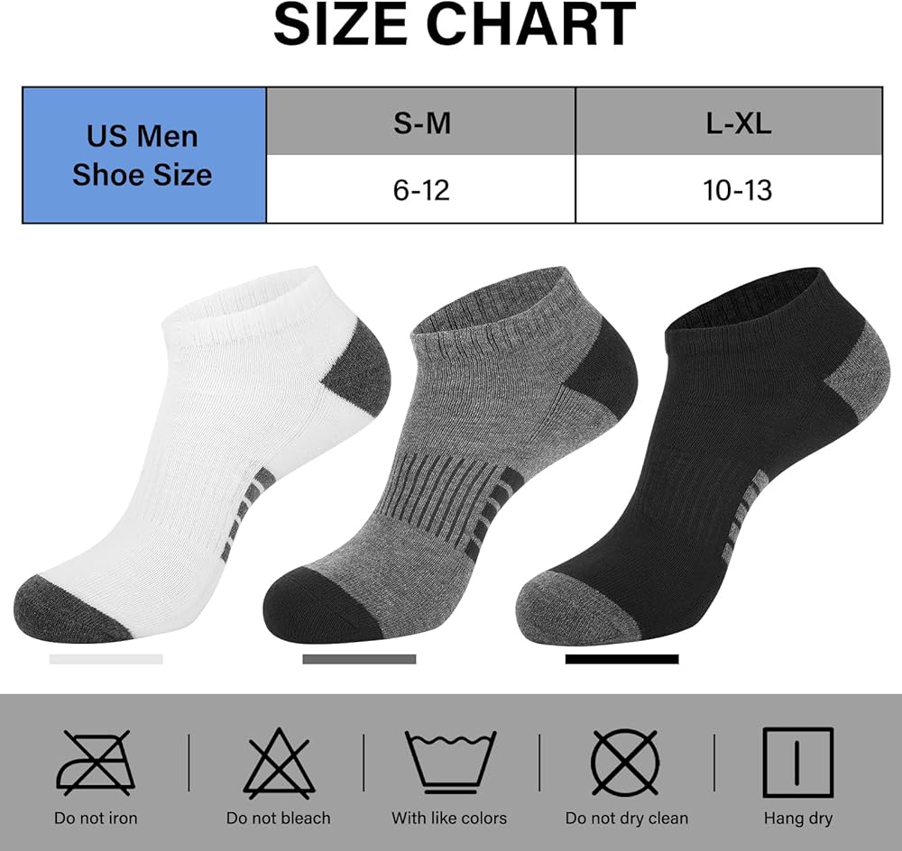 المقاس: 8 أزواج من الجوارب الرجالية للكاحل "تناسب مقاس حذاء الرجال الأمريكي 6-12" قم بتخزين هذه الجوارب ذات الأداء المبطن بطول الكاحل في عبوة مكونة من 8 أزواج
