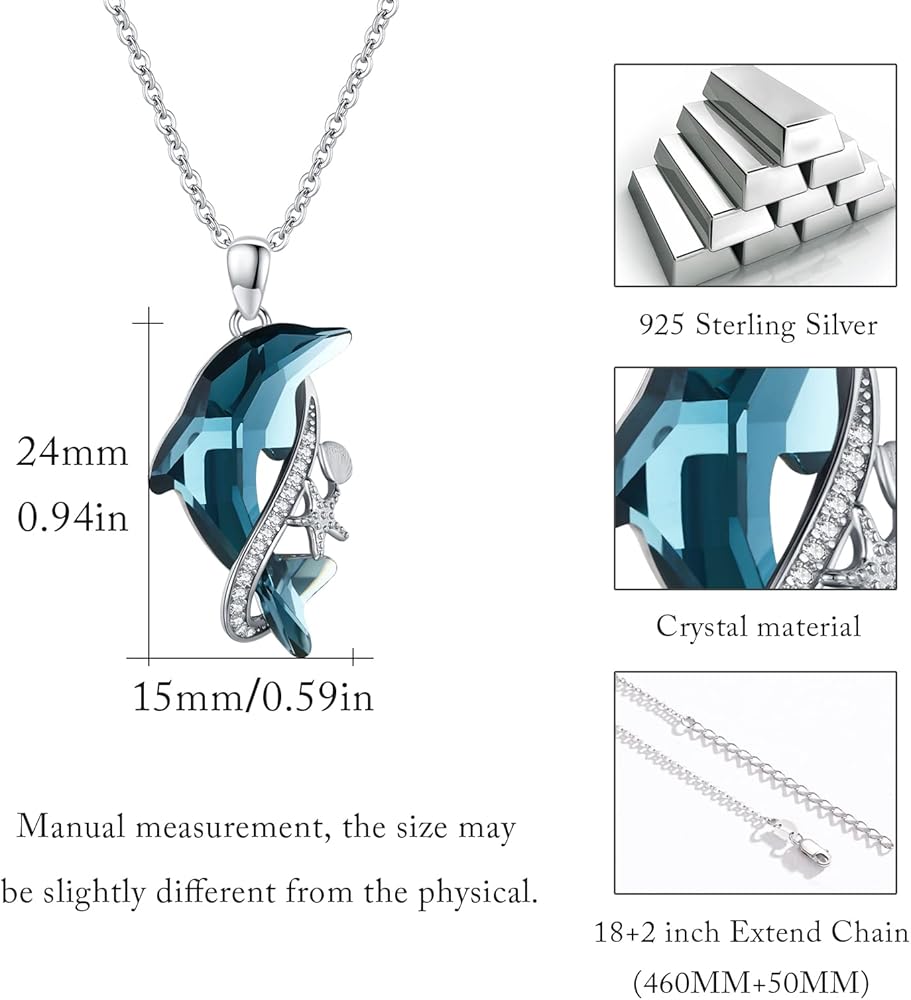 【مجوهرات من الفضة الإسترلينية S925】فضة استرلينية 925 + كريستال أزرق + زركونيا، اصنع قلادة كريستال دولفين من الفضة الإسترلينية الرائعة، ليس من السهل تغيير اللون. مريحة في الارتداء وغير ضارة للبشرة الحساسة، لا تقلق بشأن إزعاجك بقلادة كريستال الدلفين