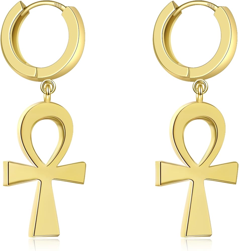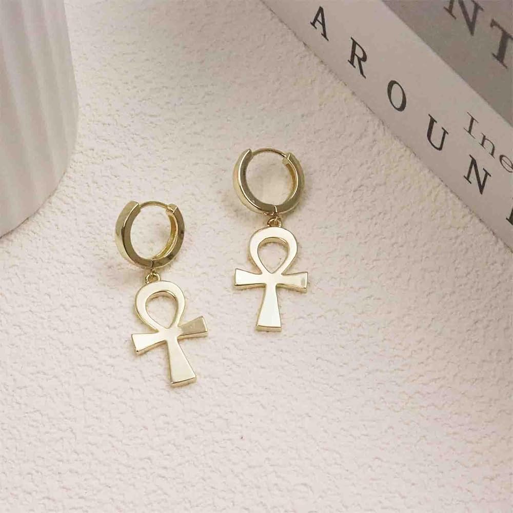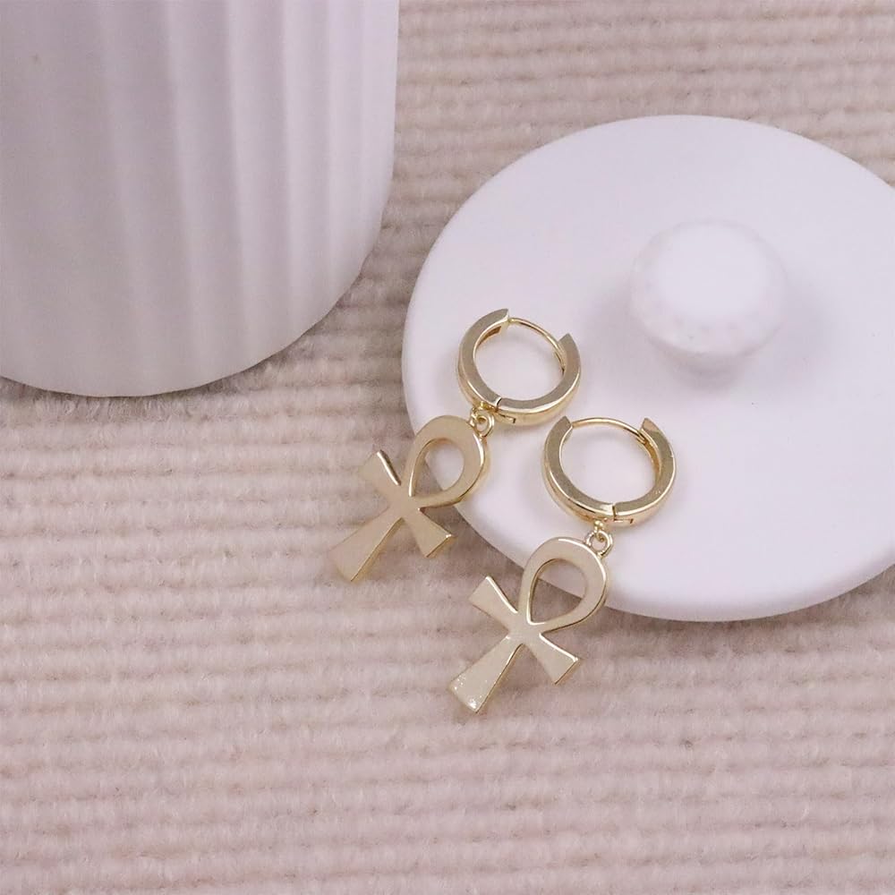 【Gold-plated Hoop earrings trend】Gold hoop earrings for women,a pair of small cross earrings hang from these high-gloss hug earrings. Simple style design is often the most feminine gold earrings,adding a chic touch to your everyday outfit.