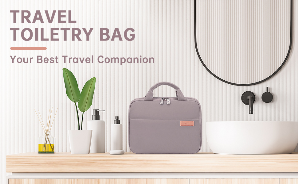 حقيبة أدوات الزينة للسفر للنساء مع تعليق، مادة TPU غير قابلة للانزلاق، حقيبة مستحضرات تجميل مقاومة للماء، منظم سفر لمستلزمات الزينة والإكسسوارات، حاوية كاملة الحجم، شامبو (أرجواني ضبابي)