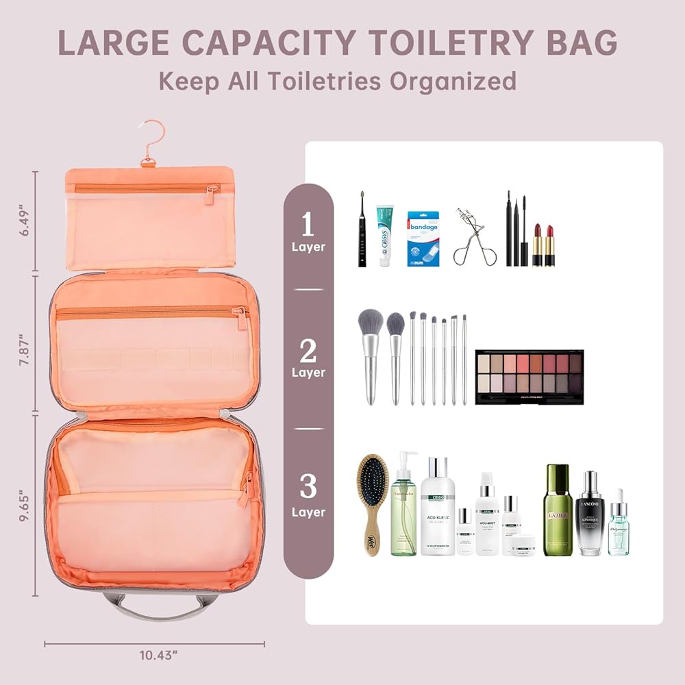حقيبة أدوات الزينة ذات سعة كبيرة - تتميز حقيبة أدوات الزينة المعلقة من KTCL بحجم صغير يبلغ 10.63 بوصة عرض × 7.87 بوصة ارتفاع × 2.75 بوصة طول (ملفوفة)، 12.6 بوصة عرض × 33.5 بوصة ارتفاع (مفتوحة)، والتي يمكن أن تساعدك تنظيم ملحقات السفر مثل أدوات النظافة، والمستلزمات اليومية، ومستحضرات التجميل بشكل منظم. مثالي للإقامات الليلية والرحلات الطويلة والاستحمام في صالة الألعاب الرياضية والأنشطة الخارجية. ستصبح حقيبة أدوات الزينة ذات السعة الكبيرة هذه رفيقك الأساسي في كل رحلة!