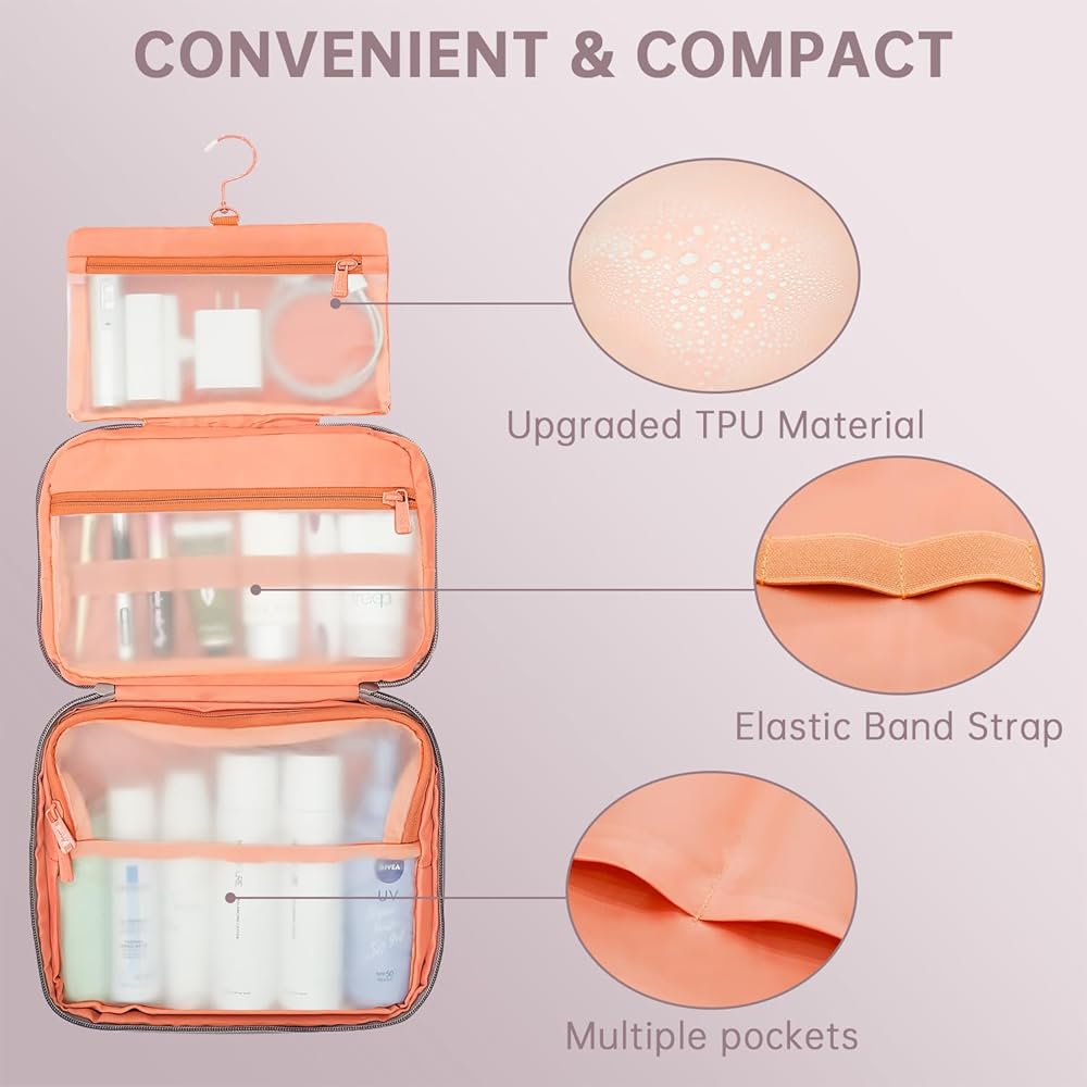 مساحات تخزين متعددة - حقيبة أدوات الزينة النسائية للسفر هذه مقسمة داخليًا إلى 3 تصميمات مختلفة من مساحات مستقلة مانعة للتسرب من مادة TPU. بالمقارنة مع مادة PVC، فهي أكثر مقاومة للاهتراء، ومقاومة للتمزق، وعديمة الرائحة وصديقة للبيئة. منطقة منفصلة مقاومة للماء لفصل العناصر المبللة بشكل أفضل، وتخزين المكياج والعناية بالبشرة والمستلزمات اليومية بشكل منفصل، مما يلبي احتياجات كل رحلة بشكل كبير.