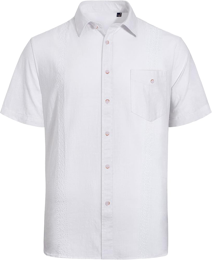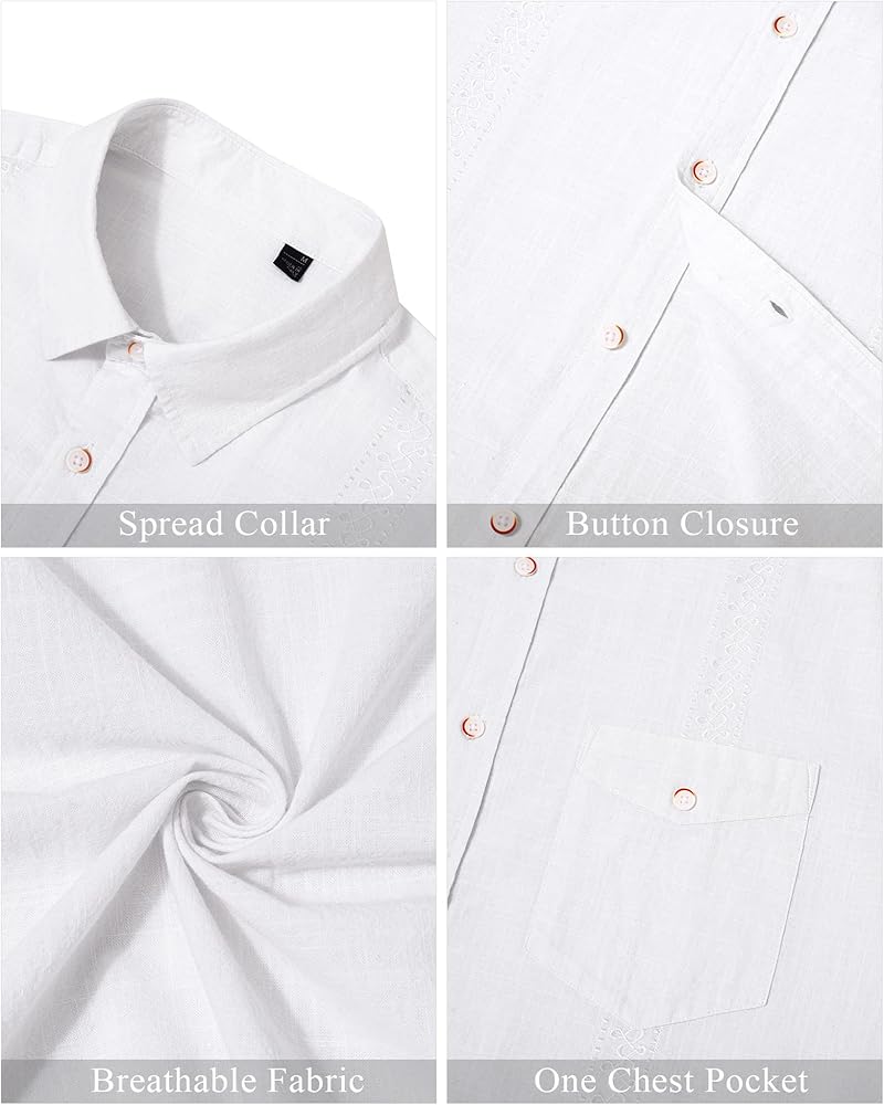 المناسبات المناسبة: قمصان الكتان القطنية الكاجوال للرجال مثالية للصيف، والعطلات، والشاطئ، والهبي، والحفلات، والاستوائية، وحفلات الزفاف، والمواعيد وغيرها من الملابس اليومية. في الملابس الكاجوال اليومية، سيظهر هذا القميص الرجالي قصير الأكمام سحرك دائمًا. كما أنها هدية مثالية للأزواج والآباء والأبناء والأصدقاء.