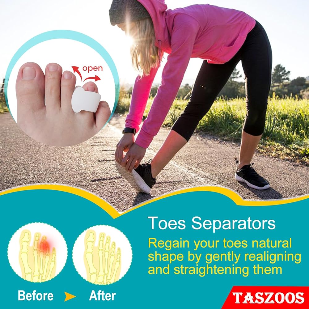 👣(حافظ على أصابع القدم منفصلة): تتوافق فواصل أصابع القدم الناعمة والمرنة مع أصابع قدميك، وتتناسب بشكل مريح مع أي حذاء وتسمح لك بالوقوف أو المشي لفترة أطول براحة. يناسب أصابع القدم المتوسطة، مثل أصابع القدم الثانية والثالثة والرابعة.