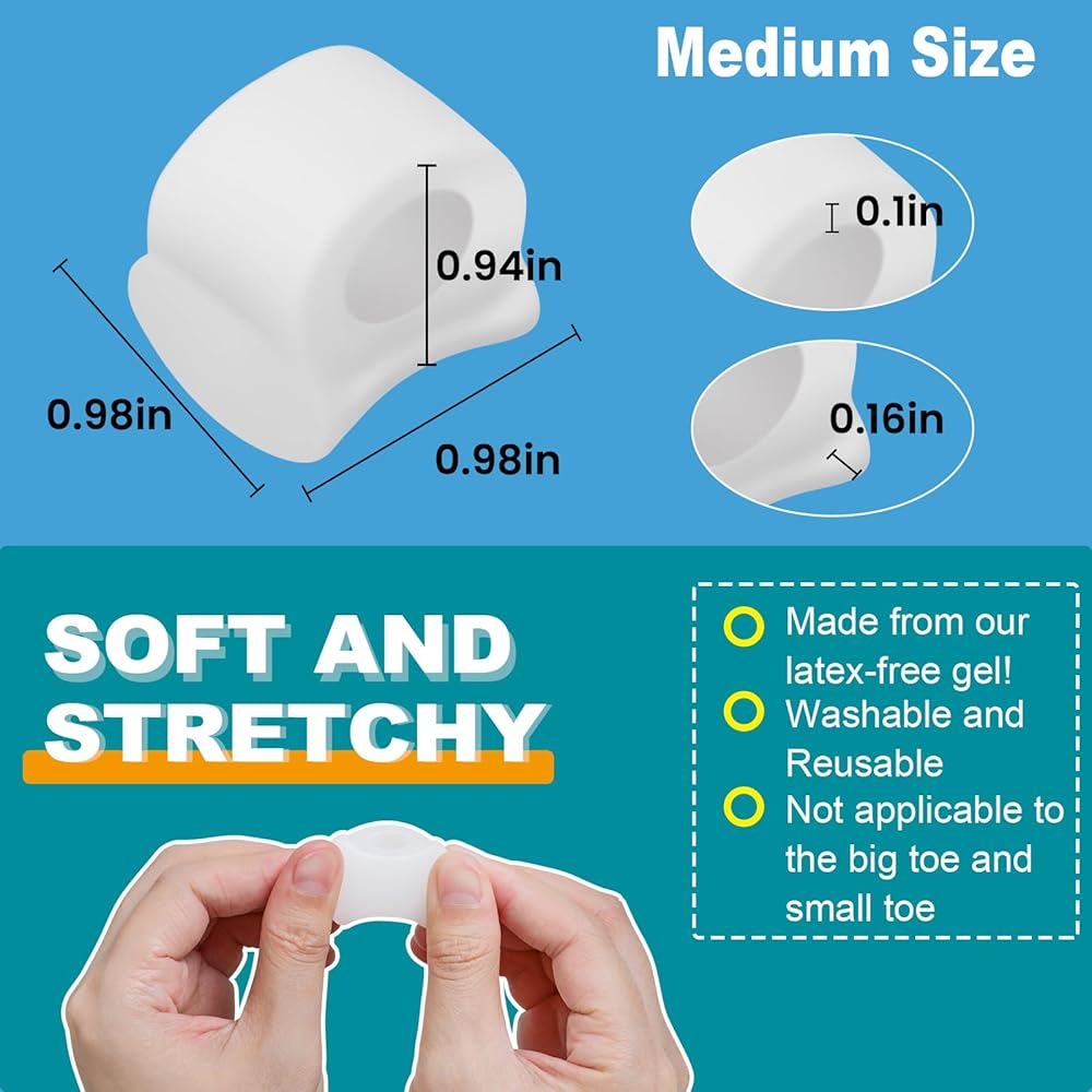 فواصل جل لأصابع القدم - (10 قطع) فواصل لأصابع القدم مع خلاصة الصبار، مصحح أصابع القدم لأصابع القدم الملتفة والمتداخلة والأورام والبثور (حجم متوسط، أبيض)