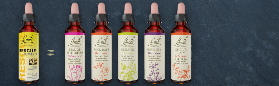 Whatever the situation ‚immediate or ongoing - Rescue Remedy can help. Taken anytime, anywhere Rescue Remedy is totally natural and contains five of the 38 Bach Flower Essences: Rock Rose for terror and panic, Impatiens for irritation and impatience, Clematis for inattentiveness, Star of Bethlehem for shock and Cherry Plum for irrational thoughts. Claims based on traditional homeopathic practice, not accepted medical evidence. Not FDA evaluated. Individual results may vary.