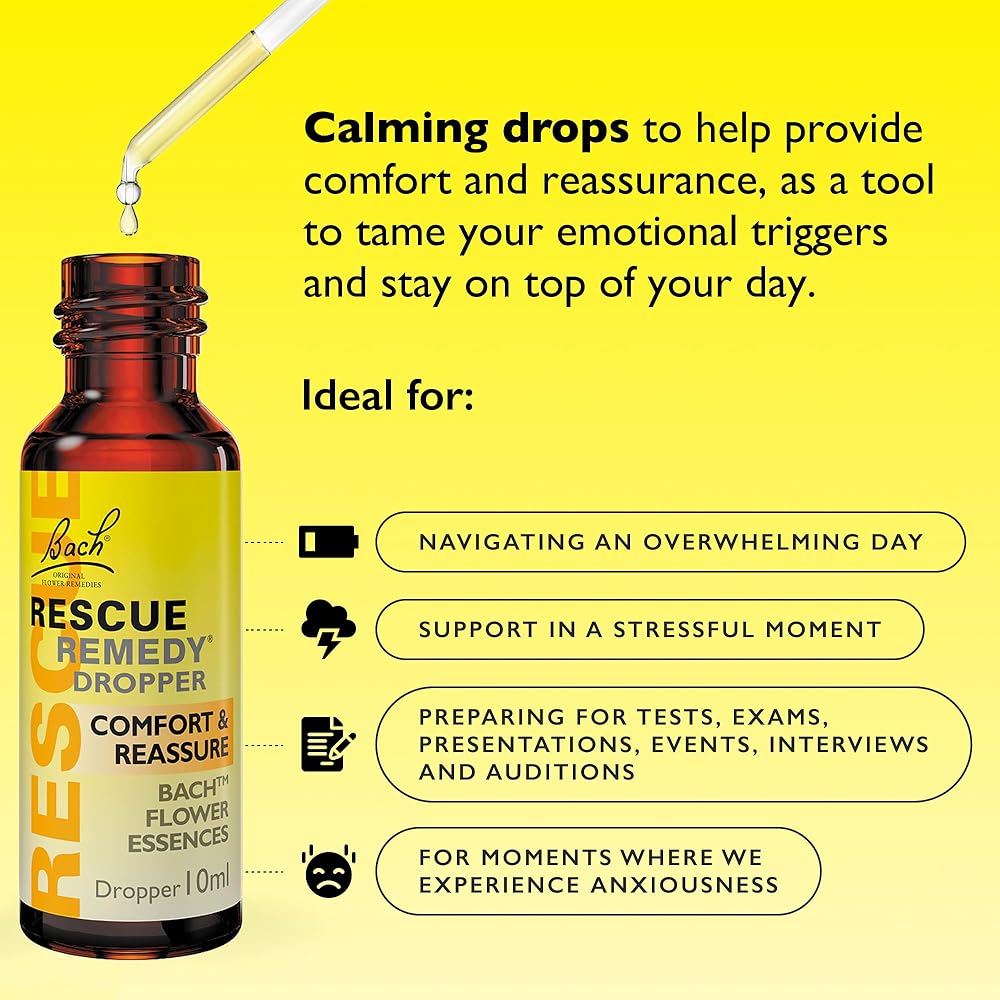 RESCUE REMEDY DROPPER contains Dr Bach's famous combination of 5 natural flower essences, hand-picked from his original gardens in the United Kingdom