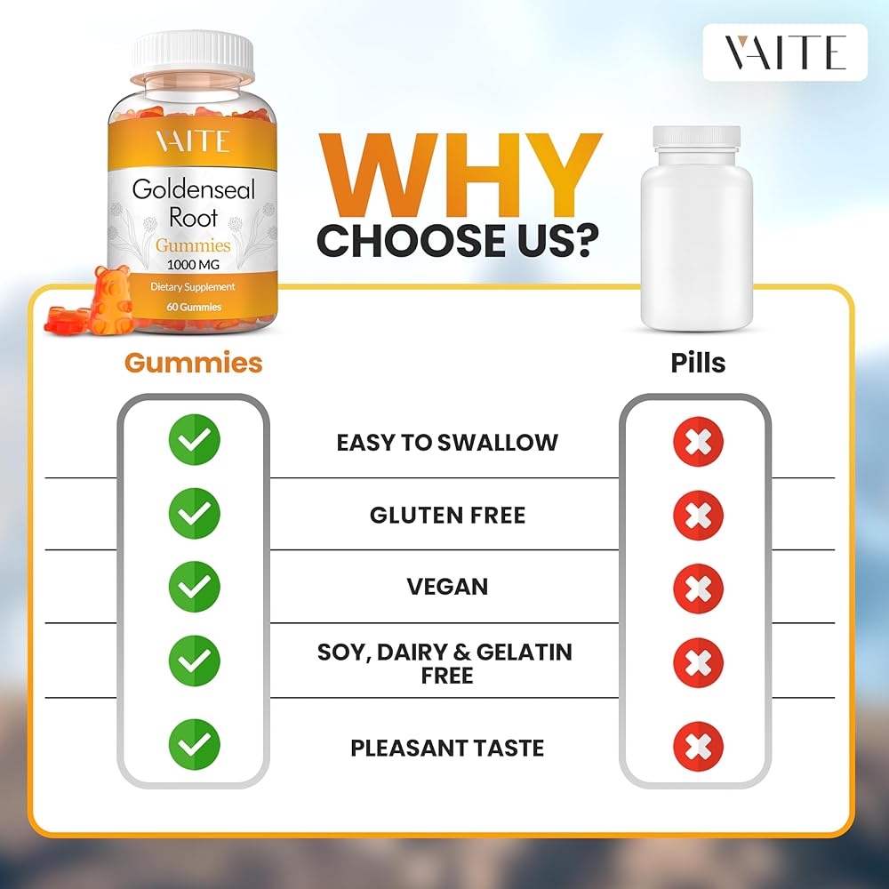 العلكة فقط! - استمتع بفوائد Goldenseal Root في شكل لزج لذيذ! قل وداعًا للحبوب ومرحبًا بالطريقة اللذيذة لدعم صحتك العامة من خلال علكات جذور Goldenseal ذات النكهات النباتية.