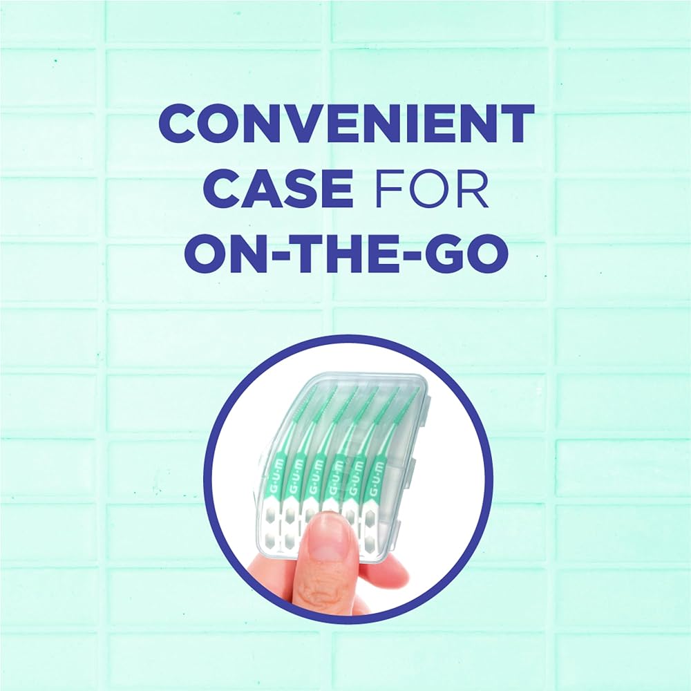 Going beyond brushing has never been easier. Meet GUM Soft-Picks Advanced Tight – The perfect portable dental pick for oral care on-the-go. Each of our dental picks features ultra-soft, rubber bristles that gently & effectively remove plaque and food particles for cleaner teeth, healthier gums, and fresher breath. What sets Soft-Picks Advanced Tight apart? ● Smaller tip for pinpoint precision in tight spaces ● Longer curved handle with smaller base diameter for a deeper reach ● Removes up to 22% more plaque than brushing alone* ● As effective as floss at removing plaque* ● Soft rubber bristles slide comfortably between teeth ● Convenient travel case included * Int J Dent Hygiene, 2018; 16:389-396 Dentists and Hygienists alike recommend Soft Picks as an effective way to clean hard-to-reach areas in your mouth. Our Advanced Tight style picks are especially well suited for food removal and teeth cleaning for those with tight interdental spaces, braces, bridges, or orthodontic appliances. GUM Soft-Picks make it easy to carry good oral hygiene with you wherever you go. Each dental pick set comes packed in a convenient plastic carrying case that fits easily into handbags, pockets, and glove boxes. Now that's something to smile about!