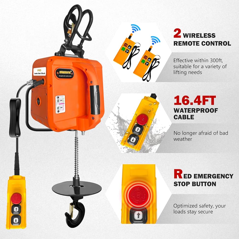 【3 في 1】: التحكم اليدوي، التحكم في الأسلاك وجهاز التحكم عن بعد اللاسلكي، مناسب لمجموعة متنوعة من احتياجات الرفع. جهاز التحكم عن بعد اللاسلكي فعال في نطاق 180 قدمًا. نحن نقدم حزام رفع إضافي وقوس تثبيت لمساعدة المستخدمين