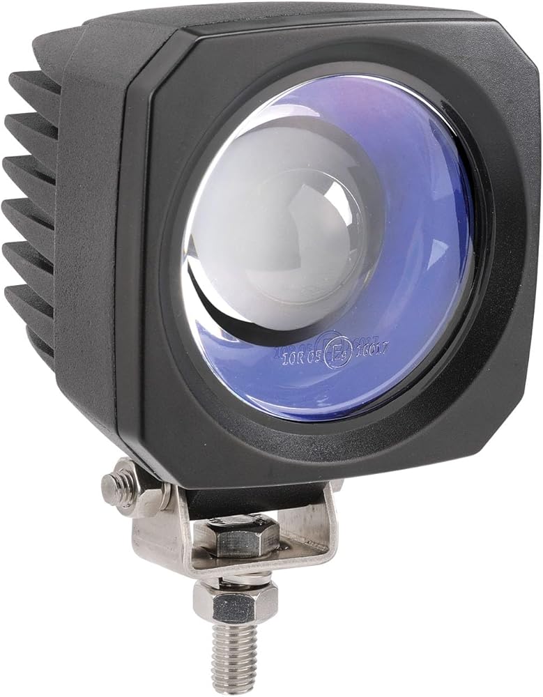 Forklift Commercial Safety Lights are an innovative new product designed to warn pedestrians and other forklift drivers of an approaching vehicle. Two powerful 5 watt Cree® L.E.Ds deliver an intense blue spot that is 19.68" (500mm) in diameter and aimed to project 16.4ft (5m) in front of the fork lift, offering additional warning to nearby vehicles or pedestrians. Ultra-compact in size, the light is fully sealed (IP66) with a pre-wired die-cast powder coated aluminum housing.