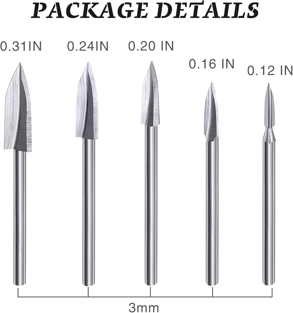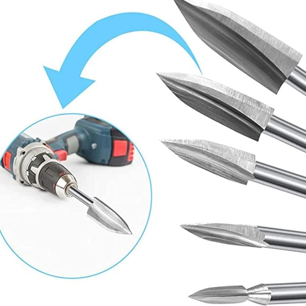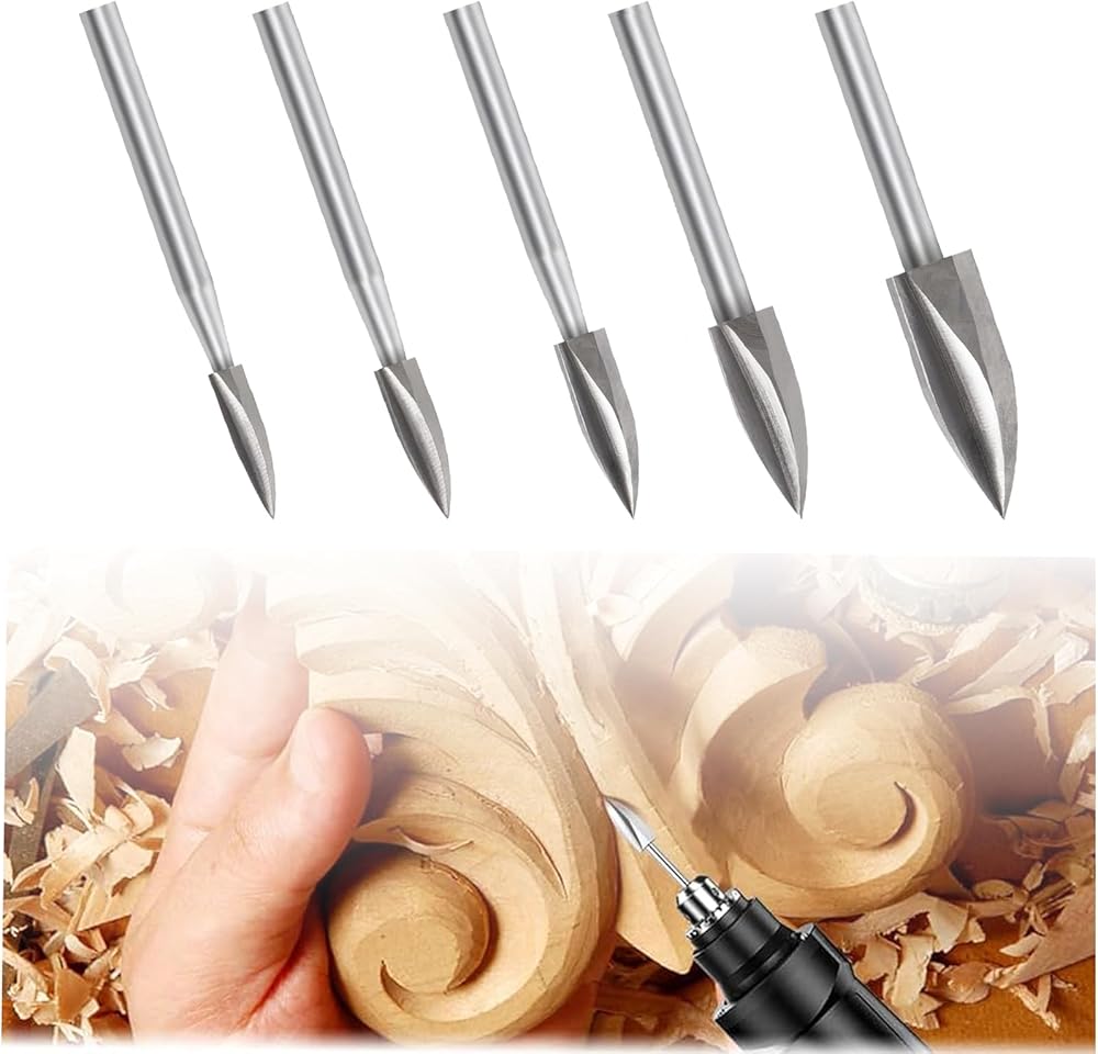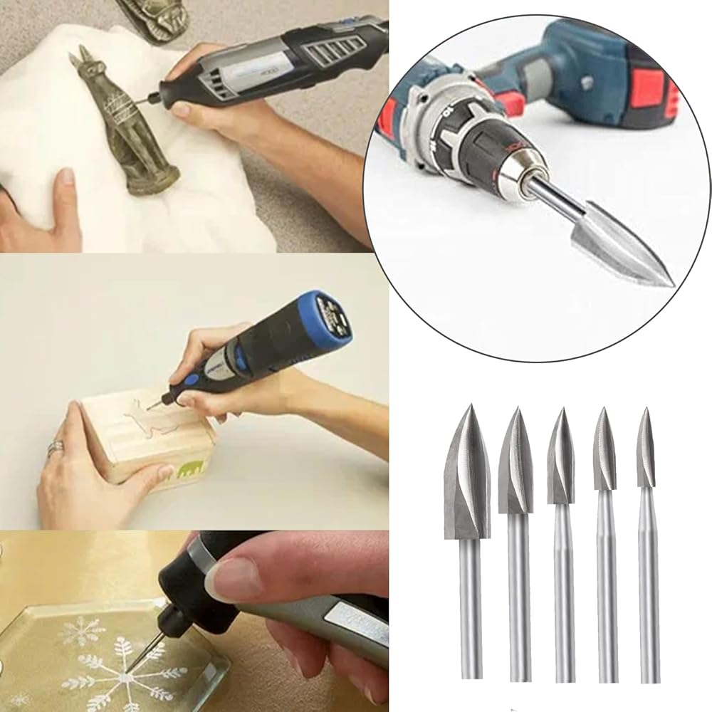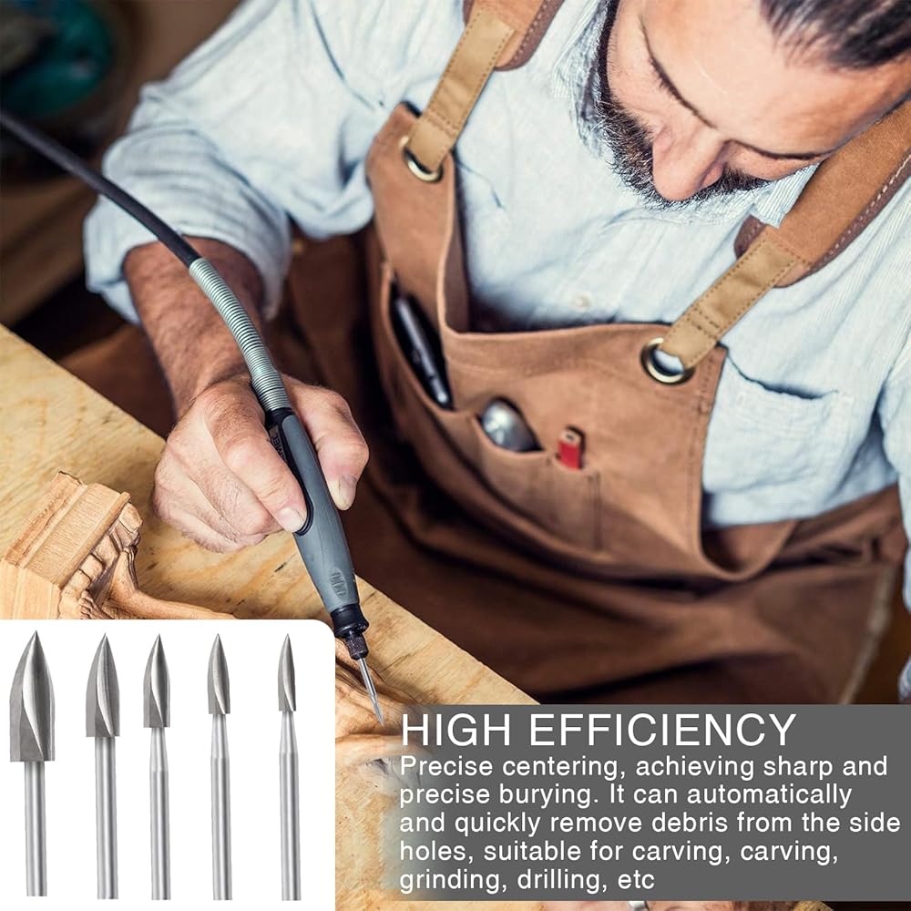 مجموعة 5 قطع من رؤوس مثقاب نحت الخشب لأداة دوارة Dre-me-l، أدوات نحت الخشب، أداة طحن الحرف الخشبية العالمية 1/8 بوصة لحفر الحفر والنحت الصغير