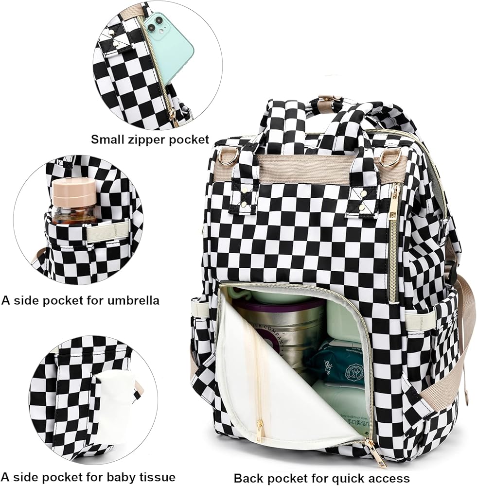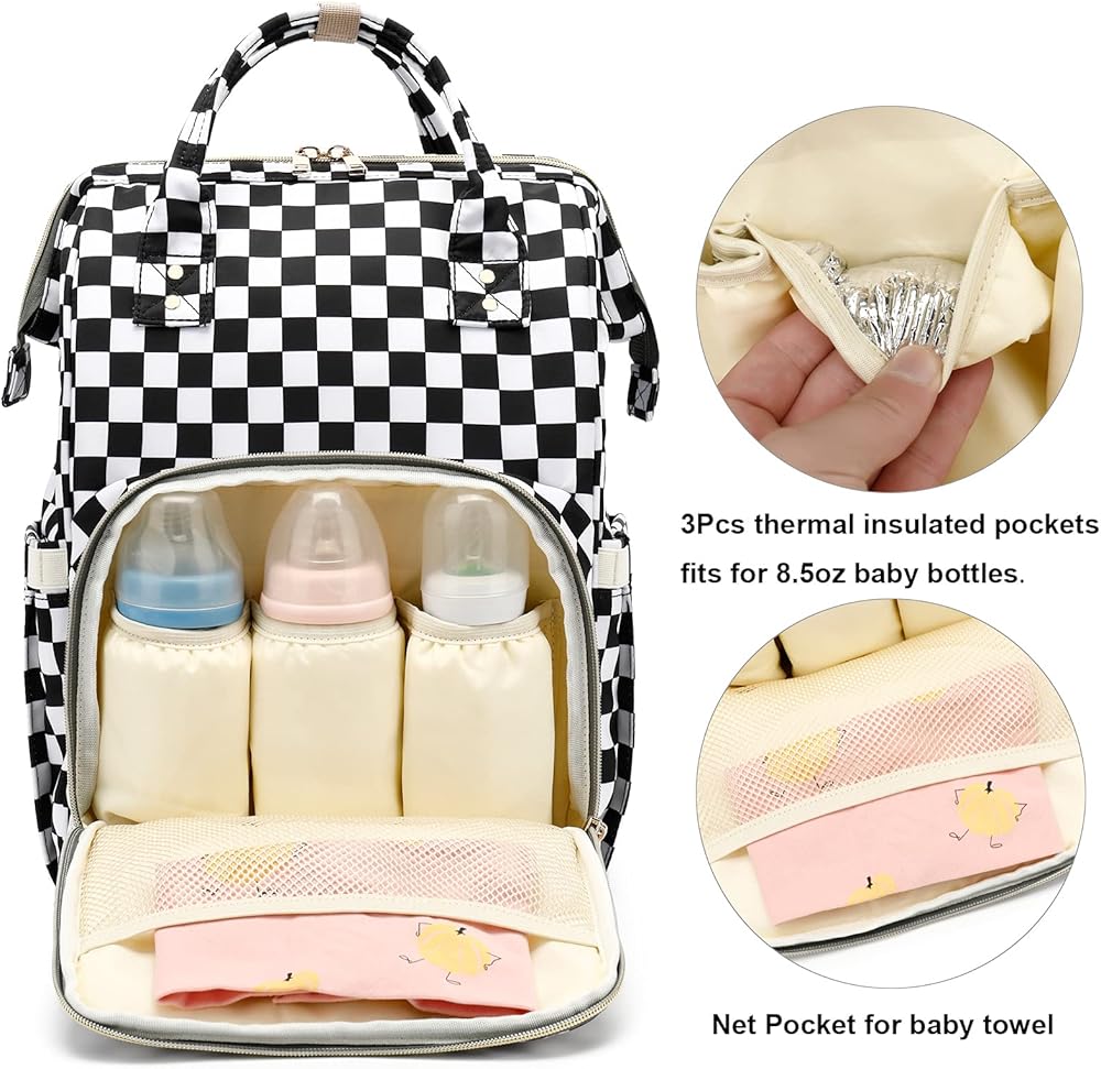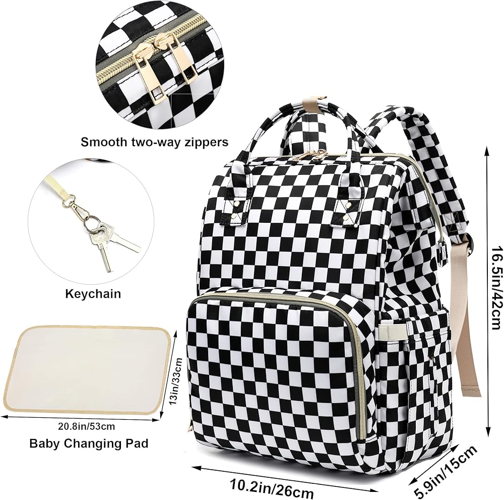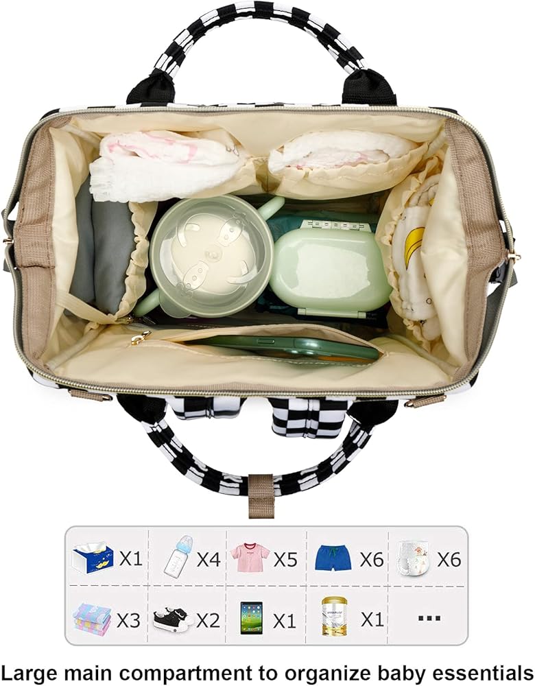 أبعاد حقيبة الحفاضات - 10.2 × 5.9 × 16.5 بوصة (طول × عرض × ارتفاع)، الحجرة الرئيسية ذات فتحة علوية واسعة وفتحة سحاب خلفي تجعل الوصول سريعًا وسهلاً، وهي كبيرة بما يكفي لحمل معظم مستلزمات الطفل الأساسية.