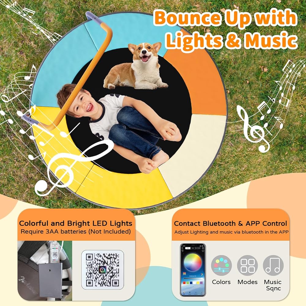 • [التحكم في التطبيق وإضاءة الترامبولين مع الموسيقى] يعرض الترامبولين تألق إضاءة تقنية RGB. تتيح لك أوضاع الإضاءة المتعددة الترامبولين الاستمتاع باللعبة واللعب ليلاً ونهارًا. لا يدعم التحكم في التطبيق فحسب، بل يمكنك أيضًا ضبط السطوع/السرعة وضبط المؤقت والاستمتاع بأكثر من 16 مليون لون وأكثر من 210 أوضاع إضاءة عبر تطبيق التحكم في الضوء. استمتع بتجربة العرض الساحر حيث تتدفق مصابيح LED بسلاسة مع إيقاع قائمة التشغيل الخاصة بك في وضع الموسيقى