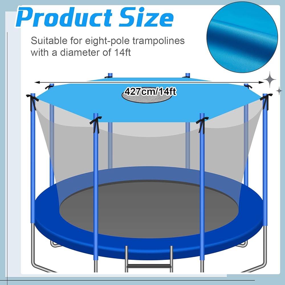 غطاء ظل ترامبولين بطول 14 قدم مضاد للأشعة فوق البنفسجية 8 أقطاب ترامبولين مظلة للحماية من الشمس سهلة التركيب ملحقات مظلة الترامبولين المحمولة للصيف في الهواء الطلق في الفناء الخلفي، أزرق