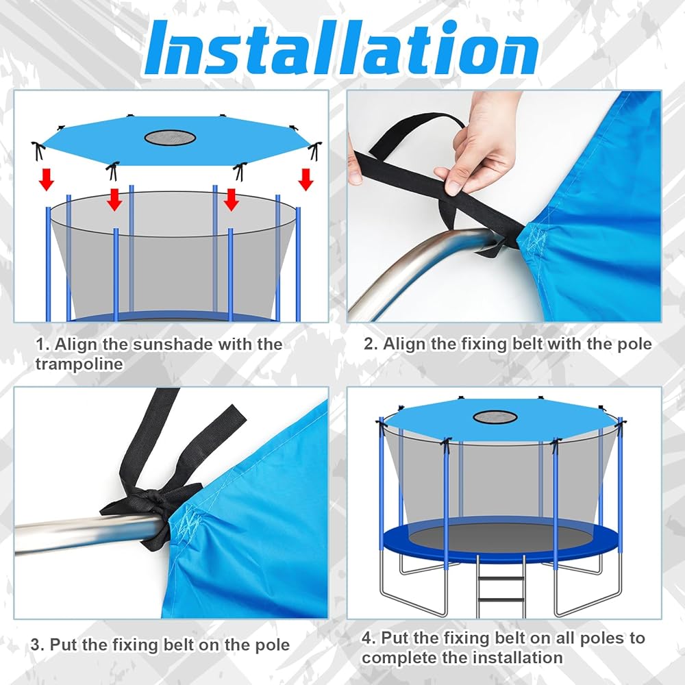 • تثبيت آمن وإعداد سهل: تم تجهيز مظلة الترامبولين الخاصة بنا بأشرطة إغلاق بنقرة ومزلاج سلك سفلي، مما يضمن تثبيتًا آمنًا، وعملية تركيب وإزالة سهلة، مريحة وسهلة الاستخدام.