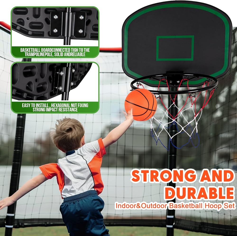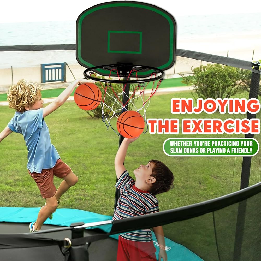 يضيف المرح: قم بتحويل الترامبولين الخاص بك إلى ملعب كرة سلة صغير مع ملحق طوق كرة السلة الخاص بنا، وهو مثالي لإبقاء الأطفال نشيطين ومستمتعين لساعات طويلة.